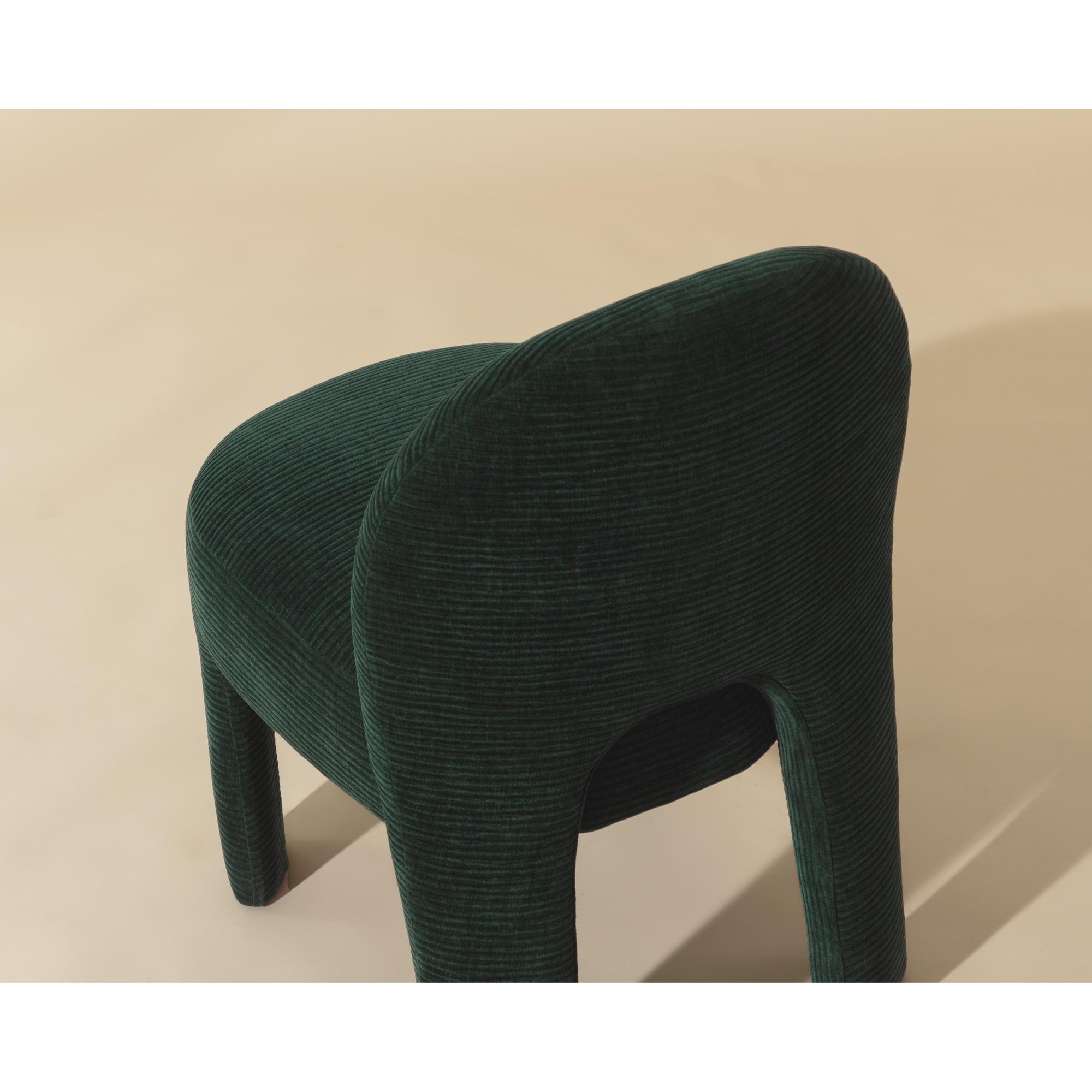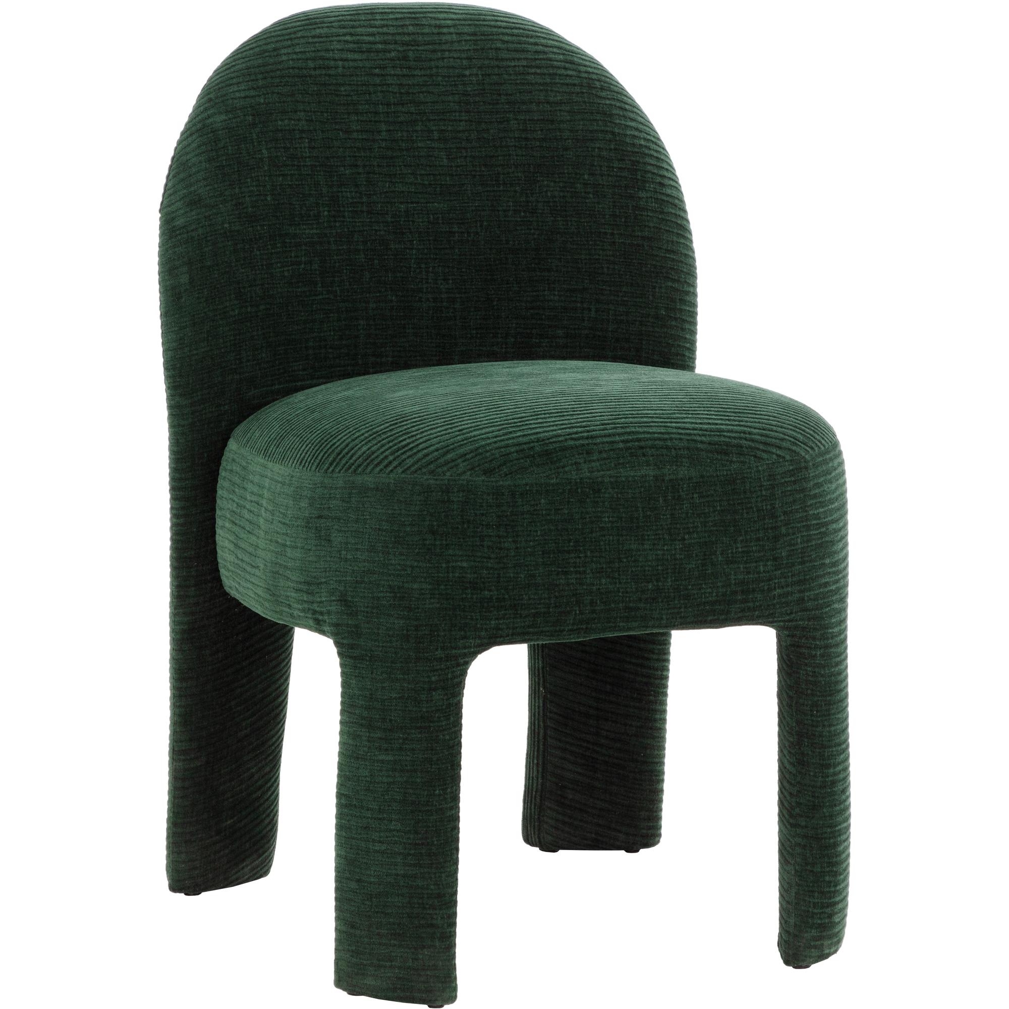 Enjoy the trendy and plush lines of the modern Myrtle Dining Chair. Artfully upholstered in rich textured opera nori fabric, this masterfully built dining chair is a true meeting of style and comfort with its sleek and modern curves and contours.