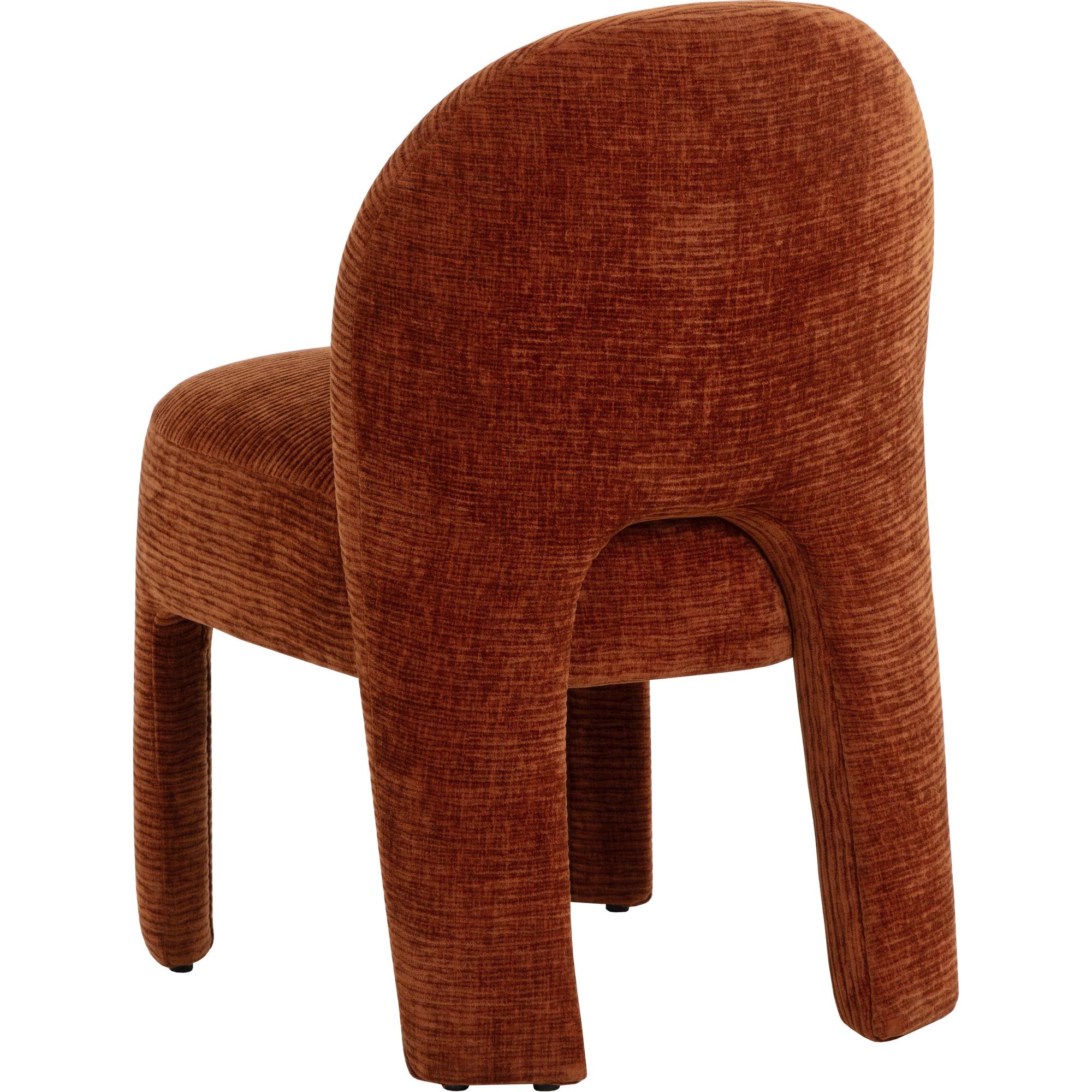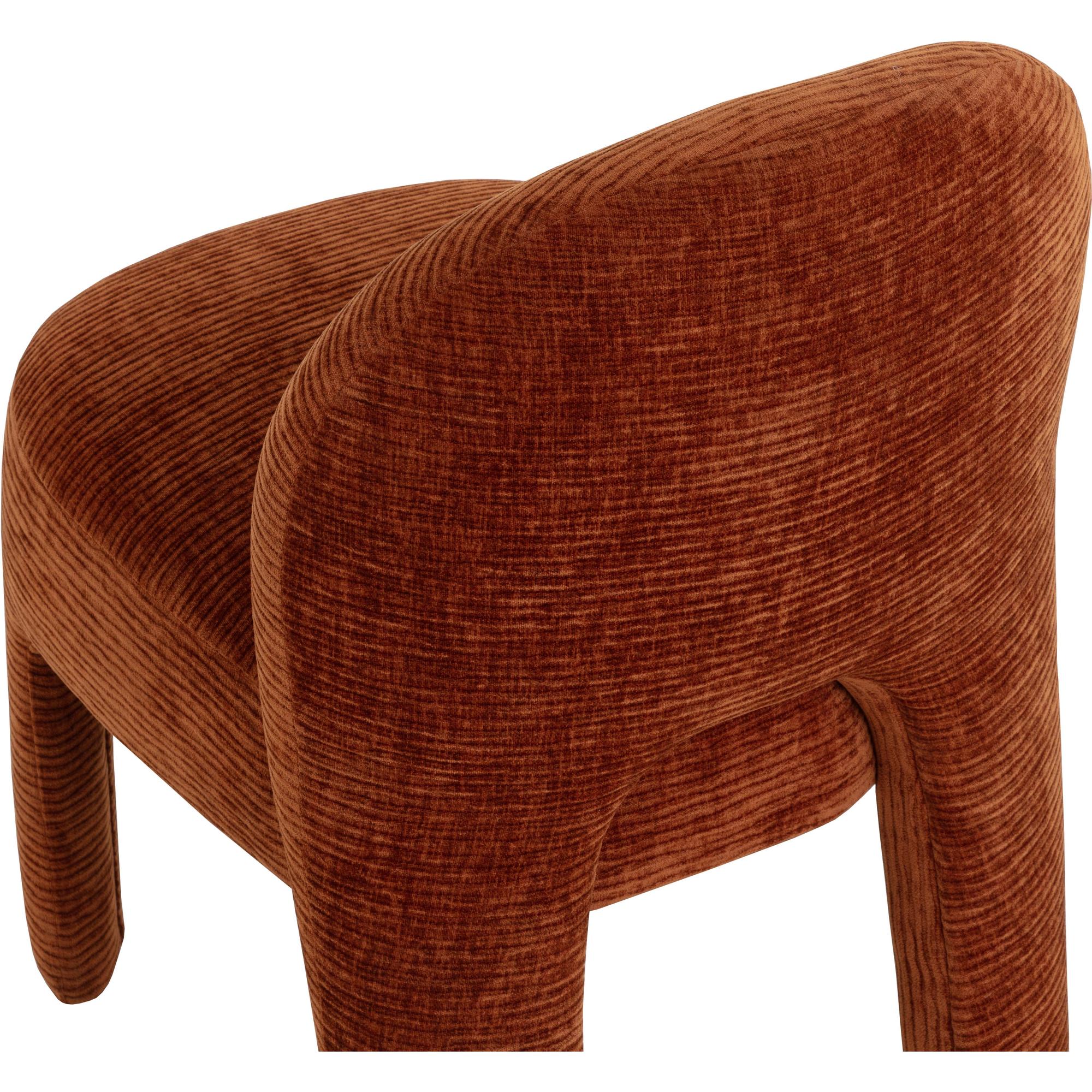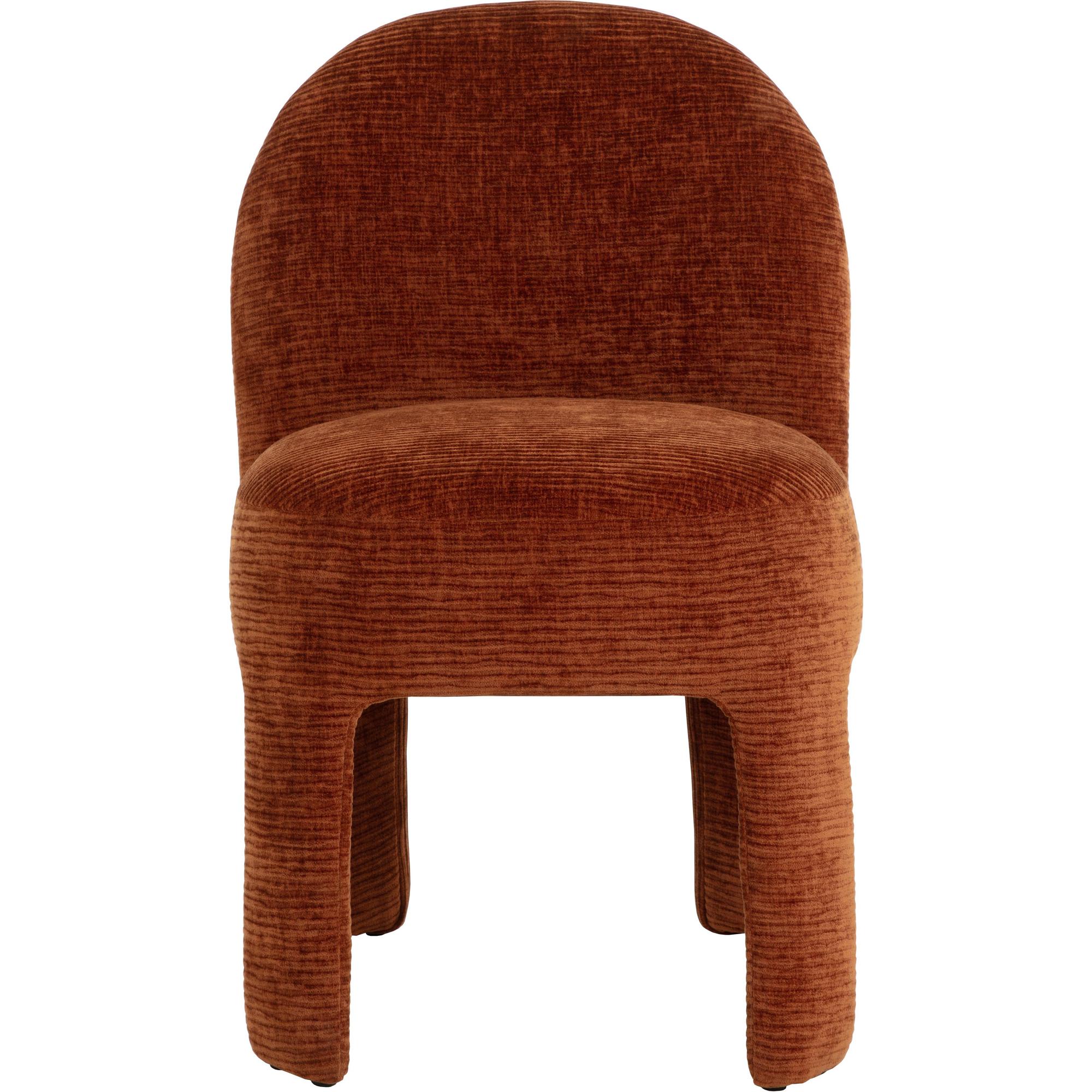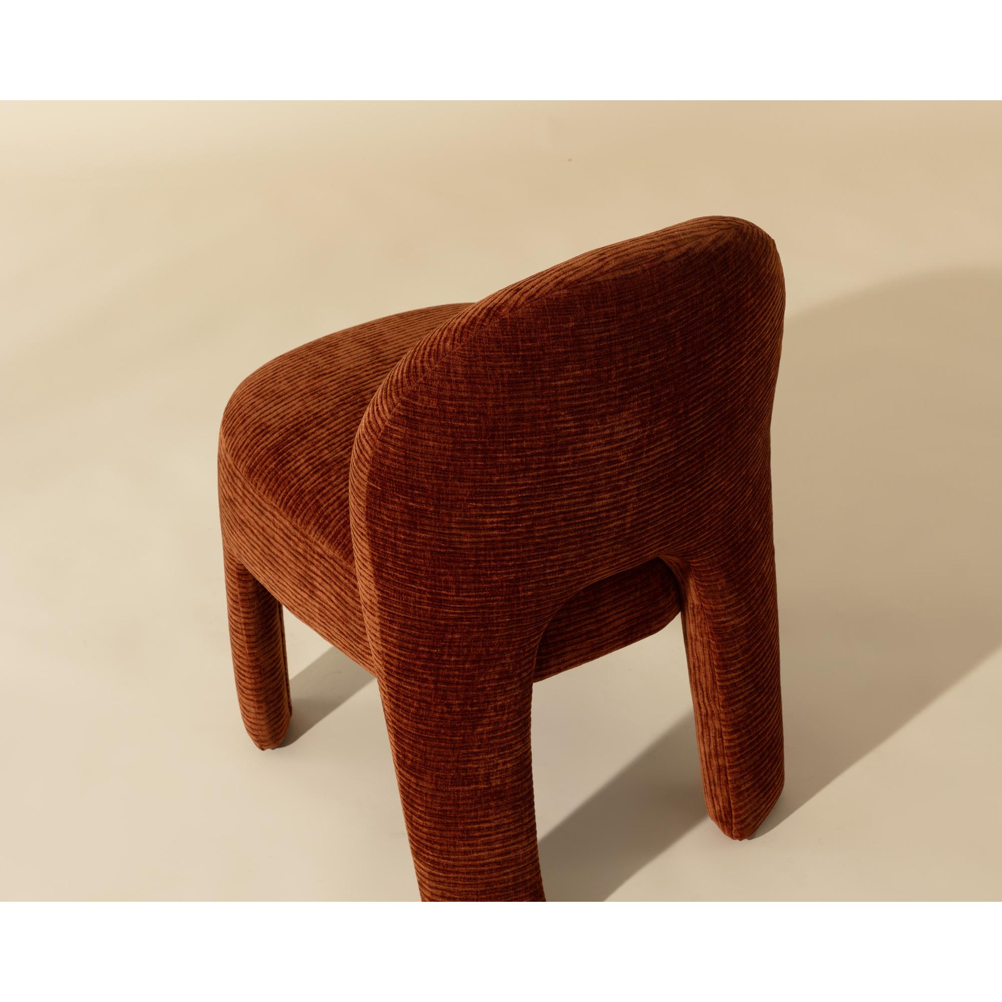 Enjoy the trendy and plush lines of the modern Myrtle Dining Chair. Artfully upholstered in rich textured opera spice performance fabric, this masterfully-built dining chair is a true meeting of style and comfort with its sleek and modern curves and contours.