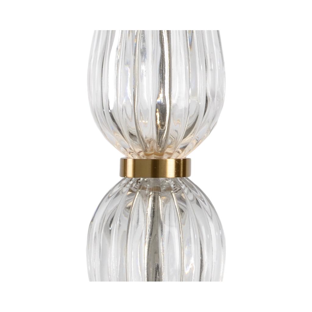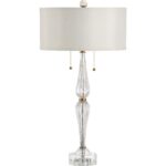Our Naomi Lamp is an elegant crystal and brass 32″ table lamp. Its gracefully curved hourglass silhouette is topped with a beige silkette shallow drum shade for a traditional design with a modern touch. Featuring two lights with pull chains, this accent light is sure to bring beauty and shine to your dining room buffet or formal living room end table.