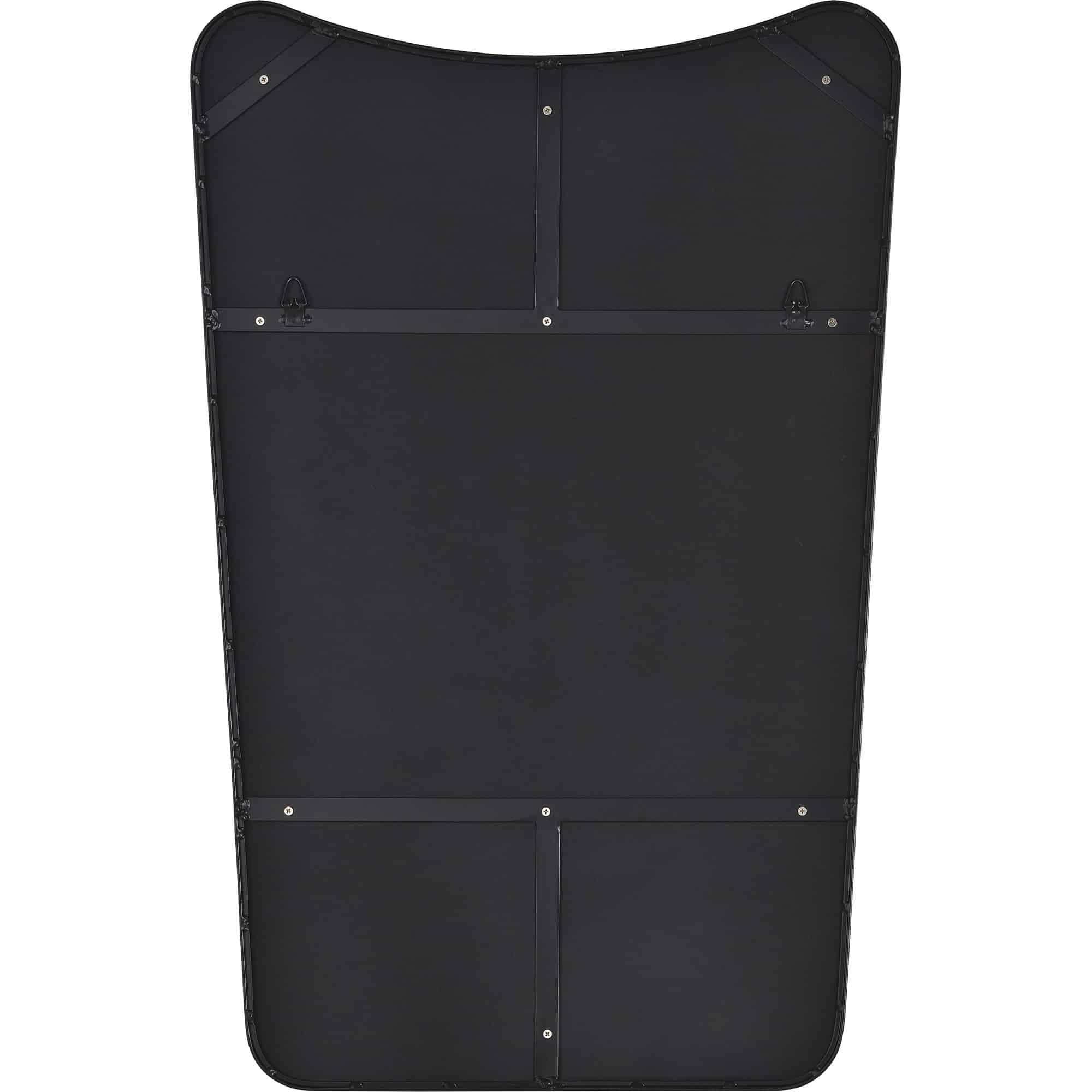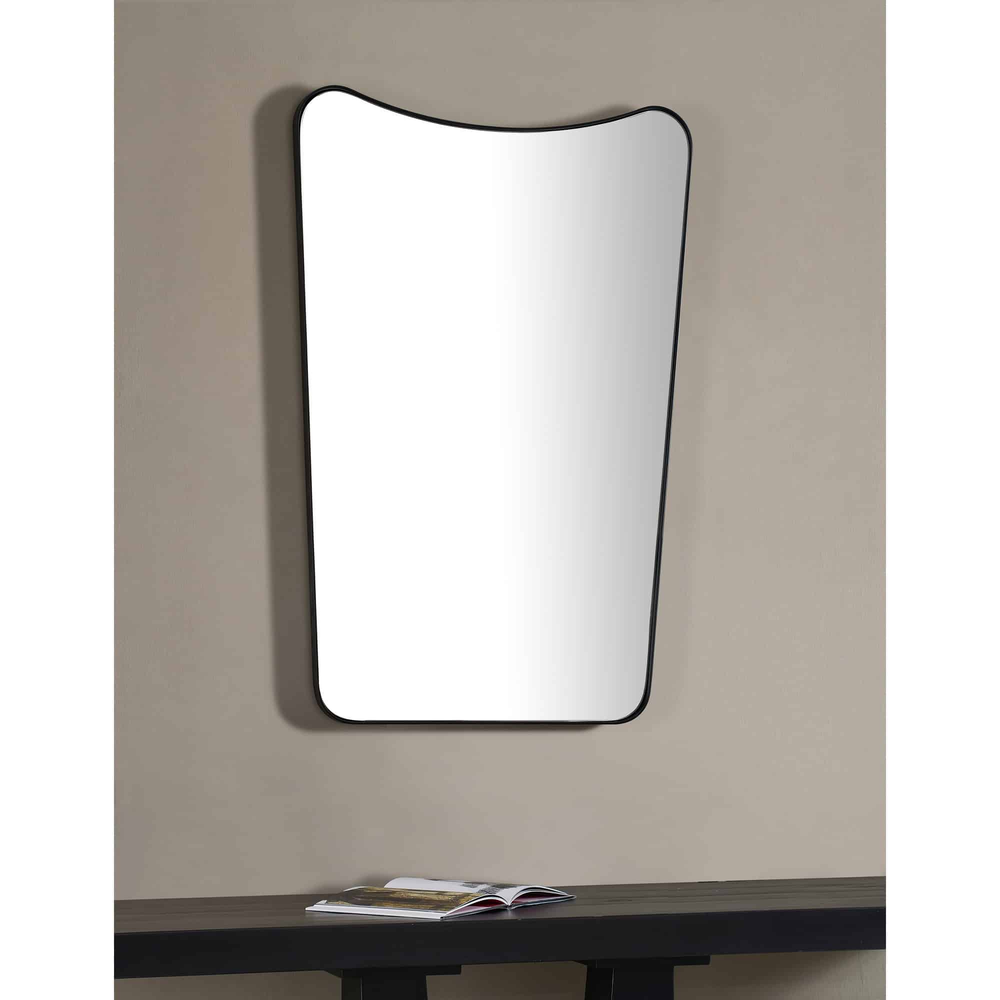 Charm and character envelop the contemporary interior when this mirror comes into the room. Eye catching angles are balanced by the traditional quality of its matte black painted iron frame. At 24 inches in width and 36 in height, it instantly adds personality to the room.