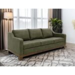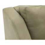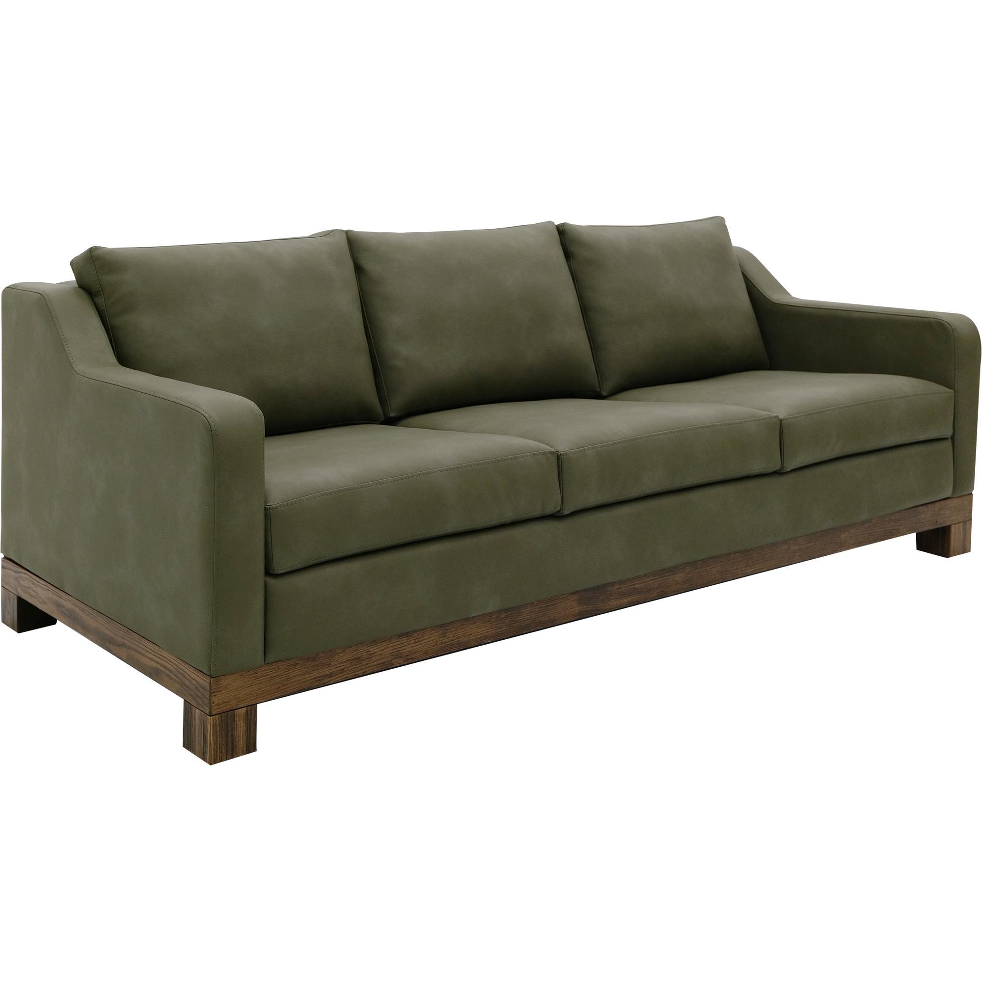 - Upholstered in olive faux leather.