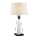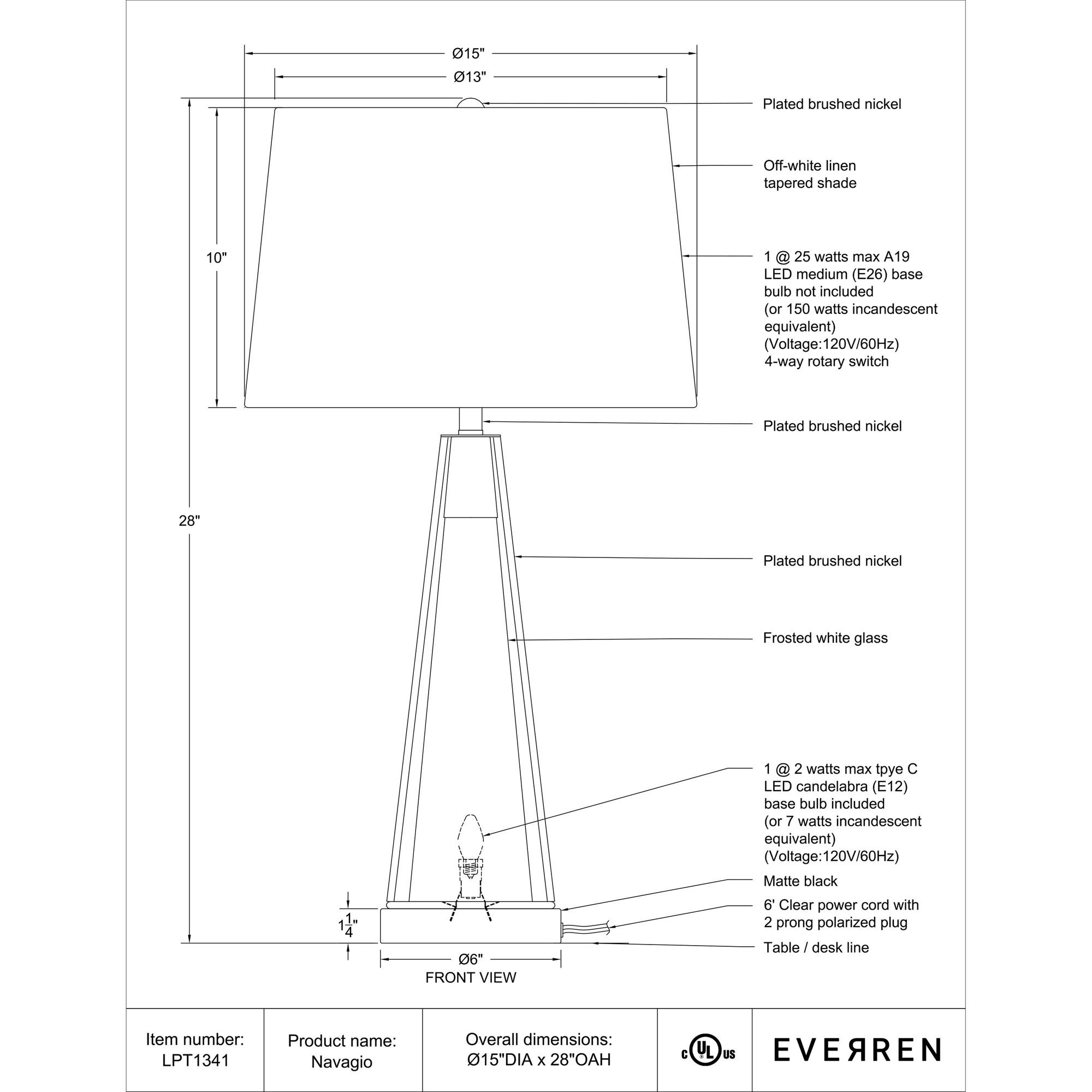 Innovation and contemporary design are on display in the Navagio lamp. Modern finishes come together in the perfect mix of frosted glass, brushed nickel, matte black and ivory linen to create a table lamp that’s as great-looking as it is effective. As a bonus, it even features a convenient night light in its base to light up any space with a soothing glow.