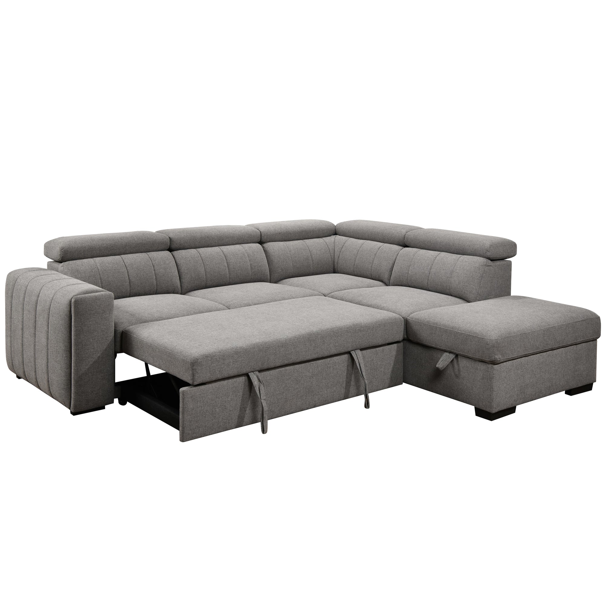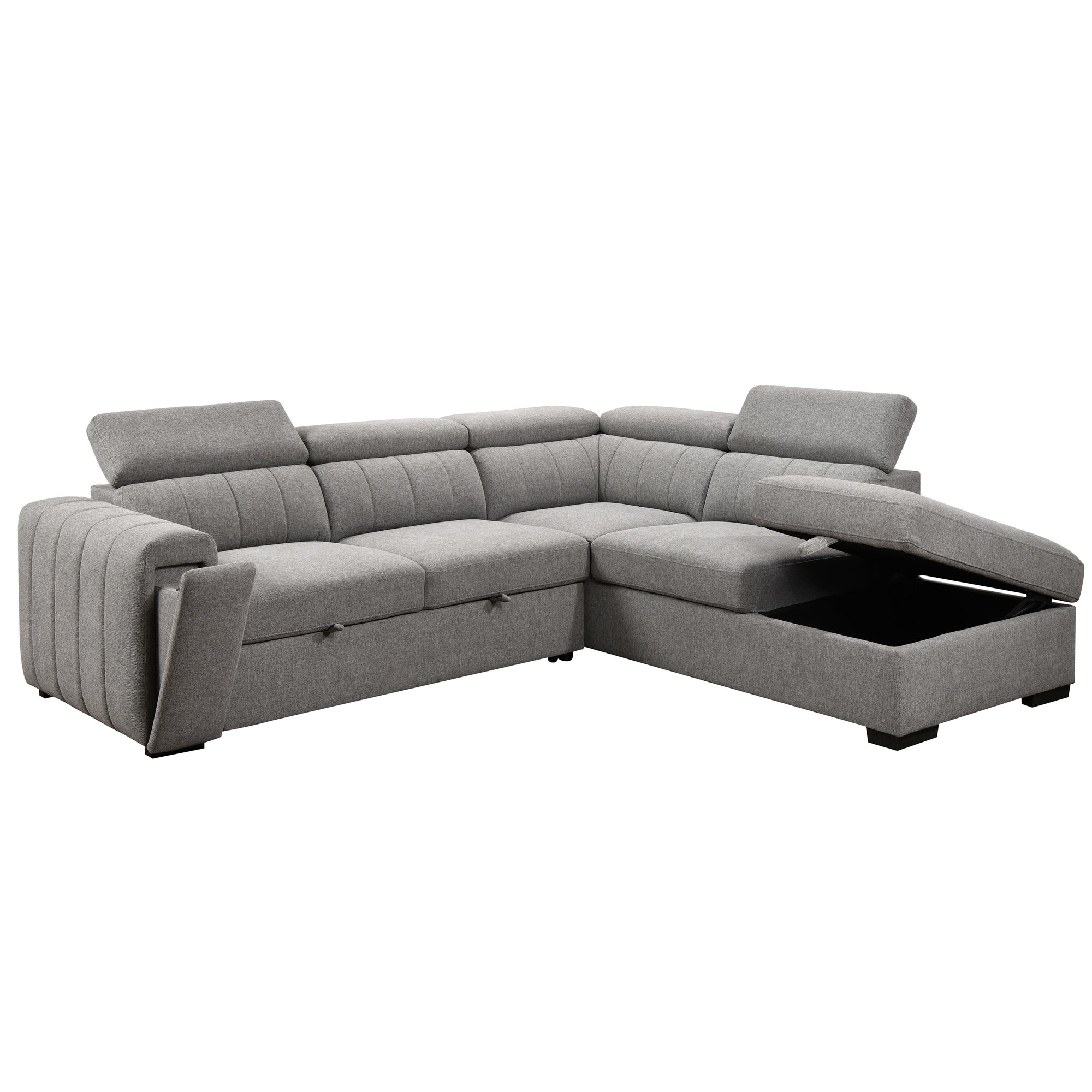 Get ready for the ultimate relaxation station with the Nello Media Sleeper Sofa. Whether you’re hosting game night, lounging through your favorite series, or catching some z’s, this sofa has you covered. Hidden ottoman storage keeps your blankets and pillows close at hand, while a spacious pull-out sleeper invites guests to stay the night. Thoughtful design details like a sleek hidden cup holder in the armrest ensure your drink is always within reach. Crafted with a solid wood and plywood frame, it’s built for durability, while pocket and zig-zag springs support foam-filled seats for maximum comfort. This sectional truly adapts to your life—because when you’re not reclining, you’re winning at relaxation.
