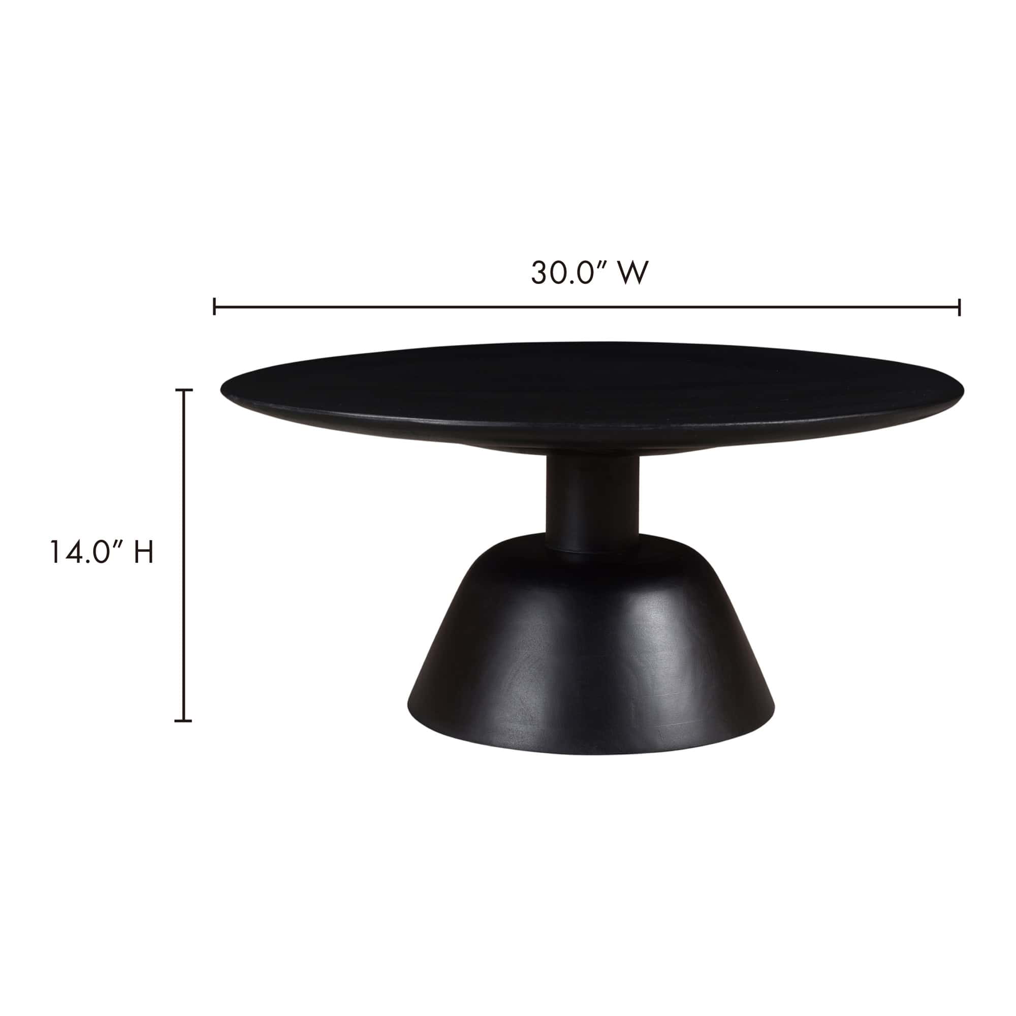Sculpted serenity. Built from solid mango wood, the Nels coffee table puts the materials front and center, serving as a natural showcase for the woodgrain. Its tastefully sculpted form features a broad base and a simple round tabletop, a pedestal for beautiful happenings. For a perfectly simple take on contemporary design, look to Nels.