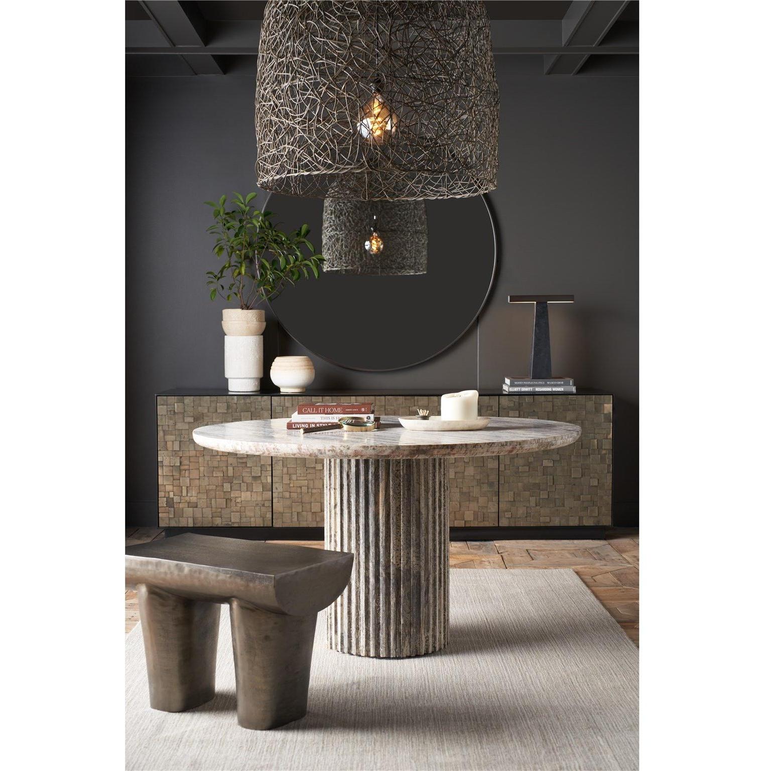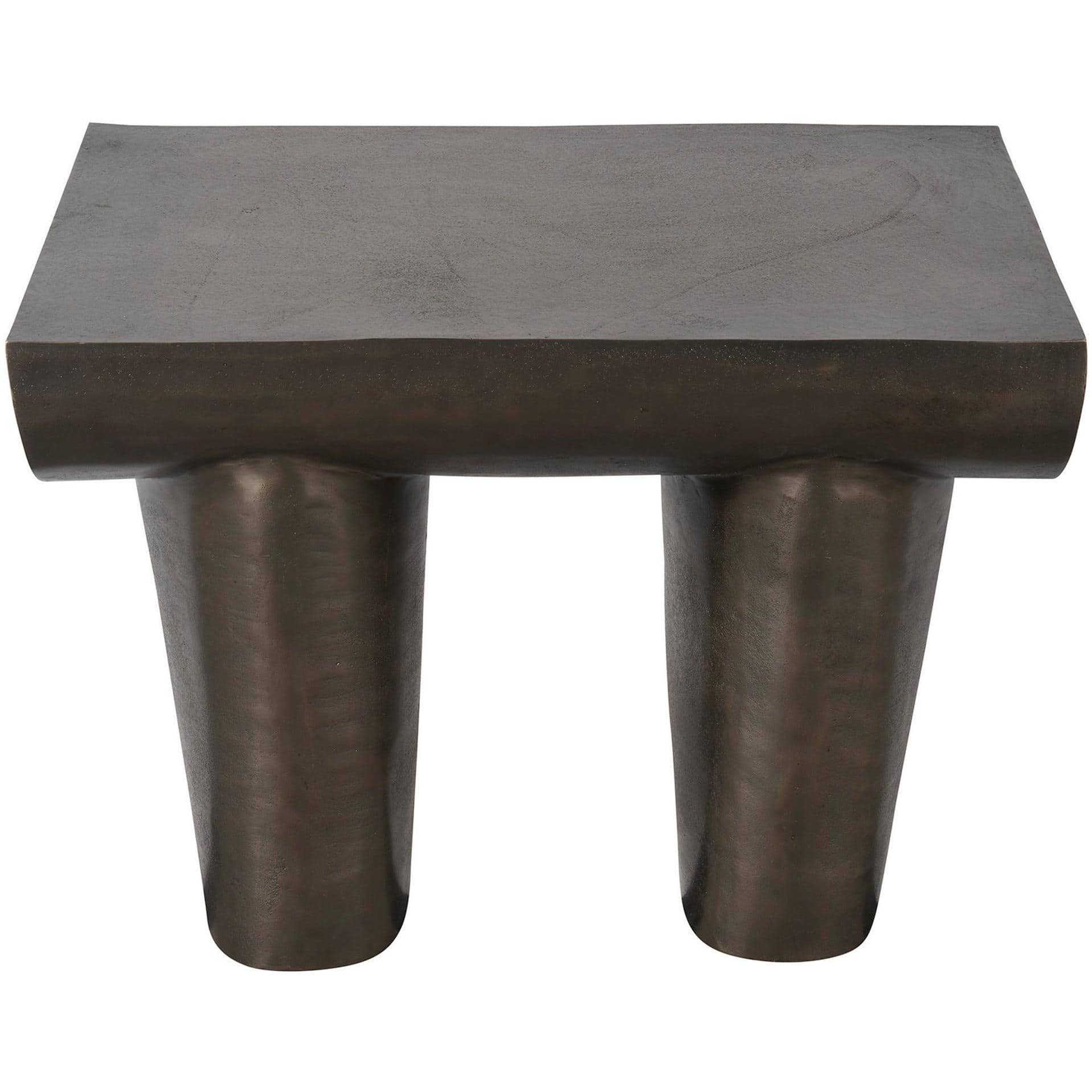 The Neutra Stool makes a bold statement with its dark Medium Graphic Brass finish, featuring a square seat perched on oversized, robust legs. This piece resembles an abstract sculpture, blending the functional with the artistic to create a striking accent that commands attention in any space it inhabits.