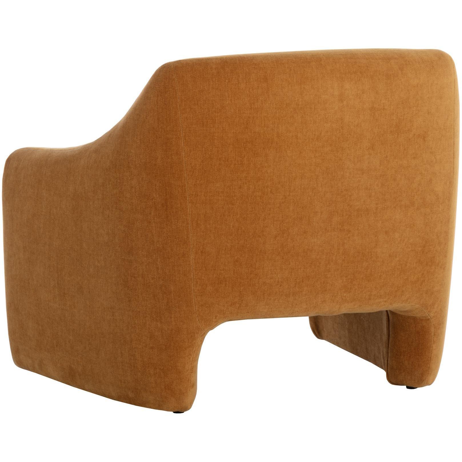 Comfort and versatility meet mid-century style in this beautiful lounge chair. Features soft curves that give a nicely structured shape. Generously upholstered in our danny amber fabric.