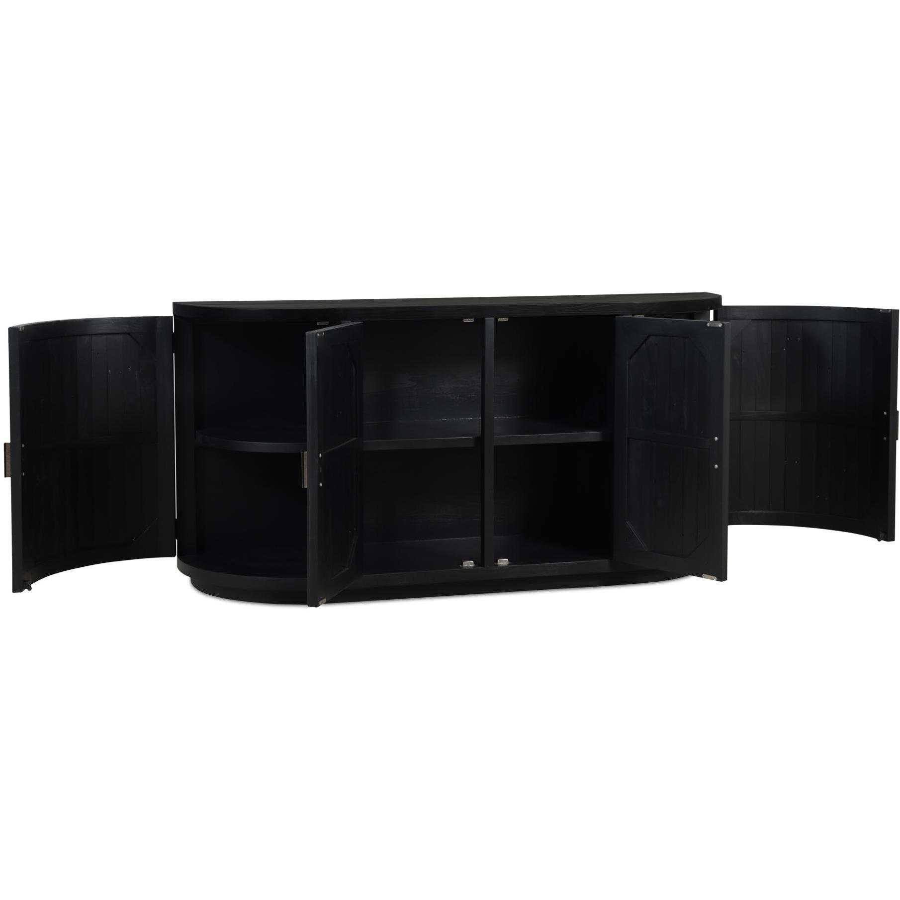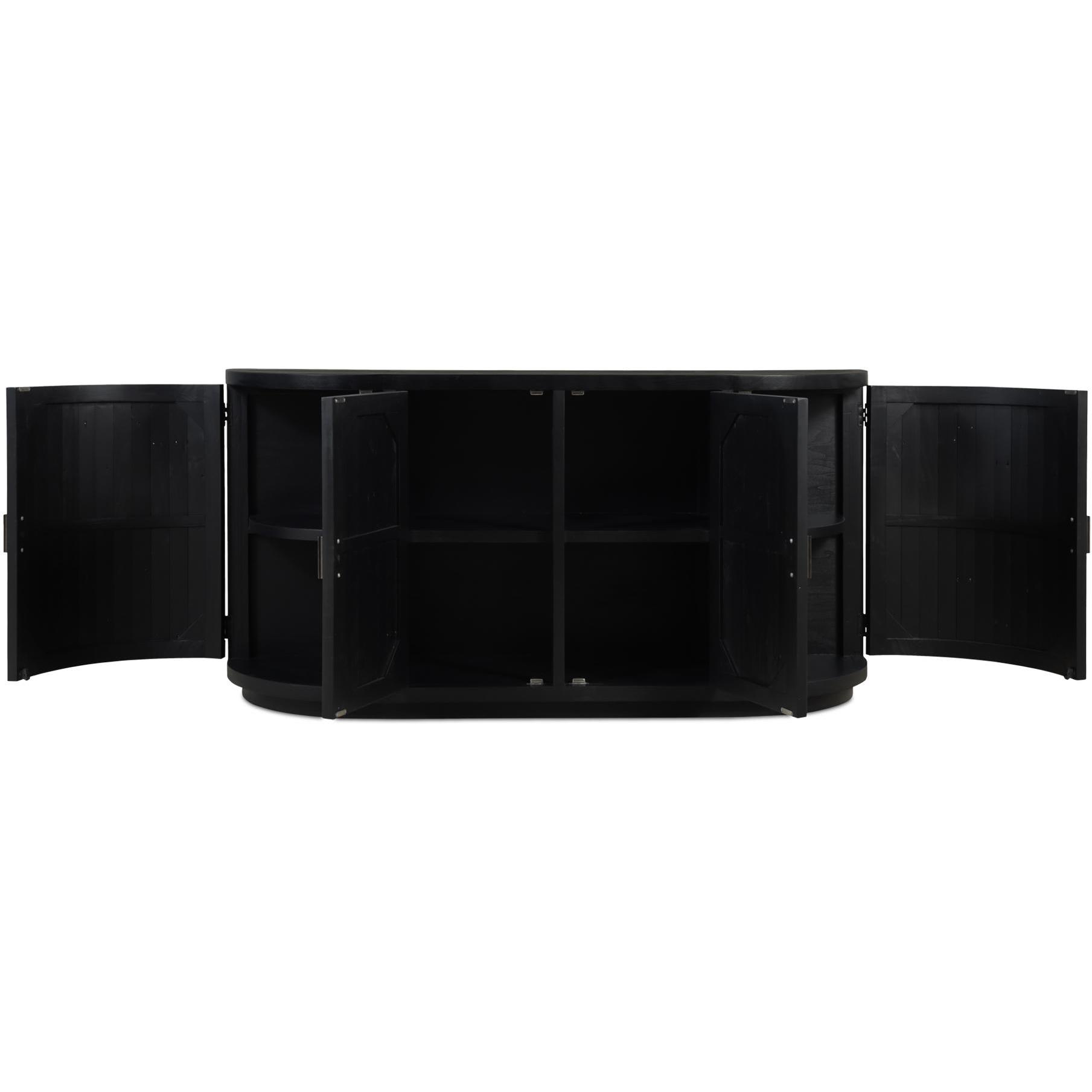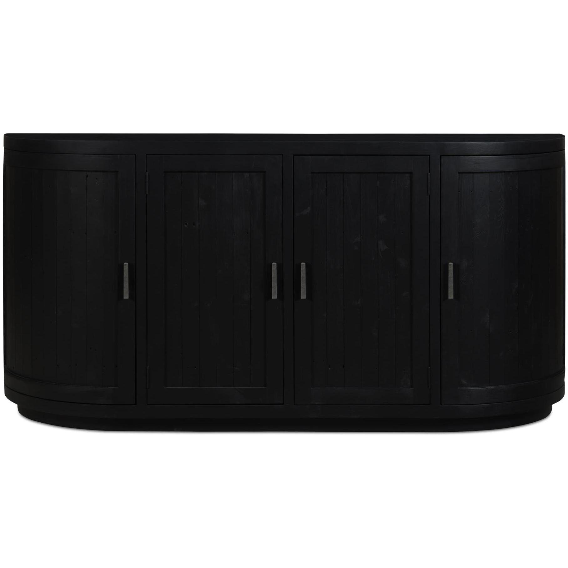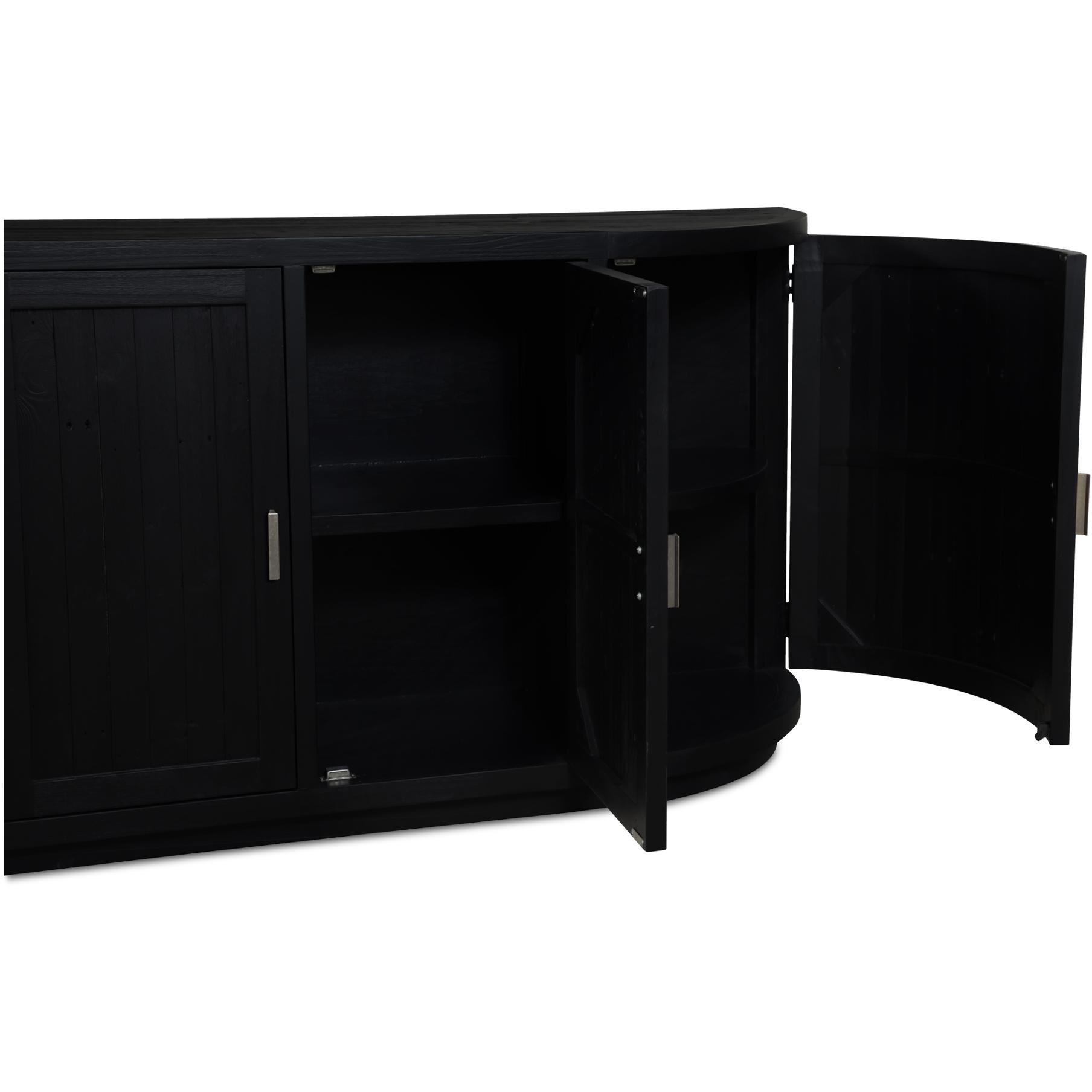 Rustic charm and contemporary design come together through reclaimed pine in the Nicola sideboard. Featuring curved doors that soften its texture, its contemporary recessed base contrasts with the rustic wood, offering a modern silhouette ideal for transitional spaces. The simple handle detail accentuates the curved design, with generous storage inside for essentials. At a comfortable 35 height, it’s designed for both functionality and style, fitting seamlessly into the dining area.
