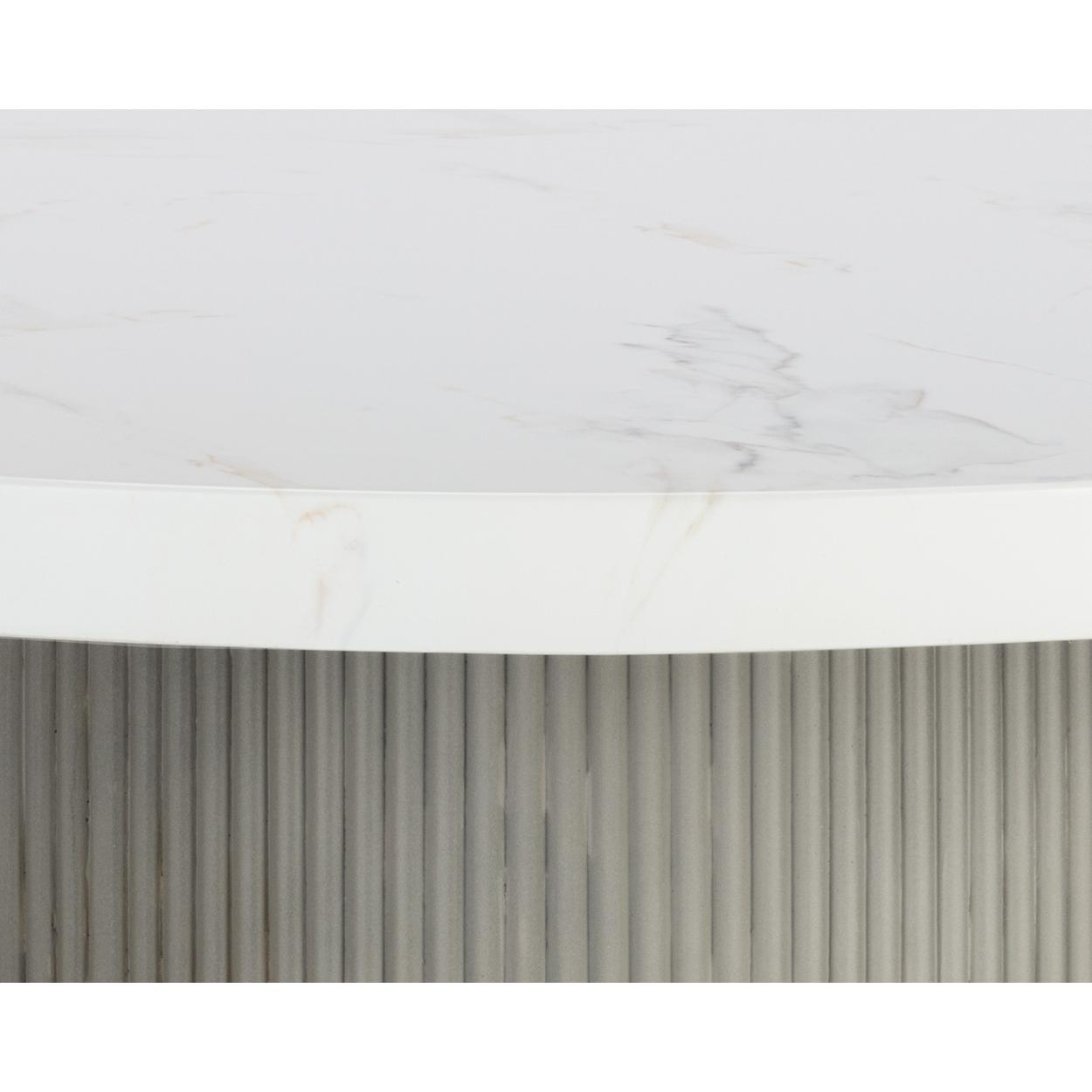 A round, contemporary 40″ dining table that features a clean and refined design. Features a stylish fluted table base.
