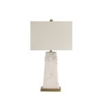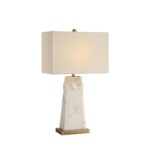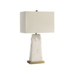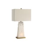 Glam up any setting with the Nisrine table lamp. Crafted from faux alabaster, its off-white and gold stone body features antique brass-plated accents for a luxe look that demands attention. Set the mood with its 4-way switch that controls 3 intensity settings plus a convenient night light. Topped off with an out-of-the-ordinary rectangular ivory linen shade, this light delivers a high-end vibe in any space.