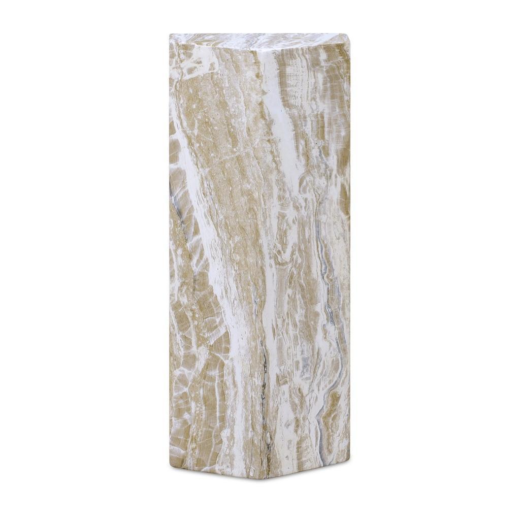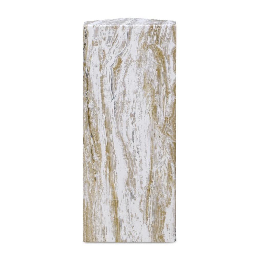 Because even your side table deserves main character energy. This five-sided accent piece brings serious presence, with sculptural form and bold texture. Cast in concrete and finished using a water-transfer technique, it mimics expressive marble veining with natural variation across every surface. Durable enough for the patio, striking enough for the living room.