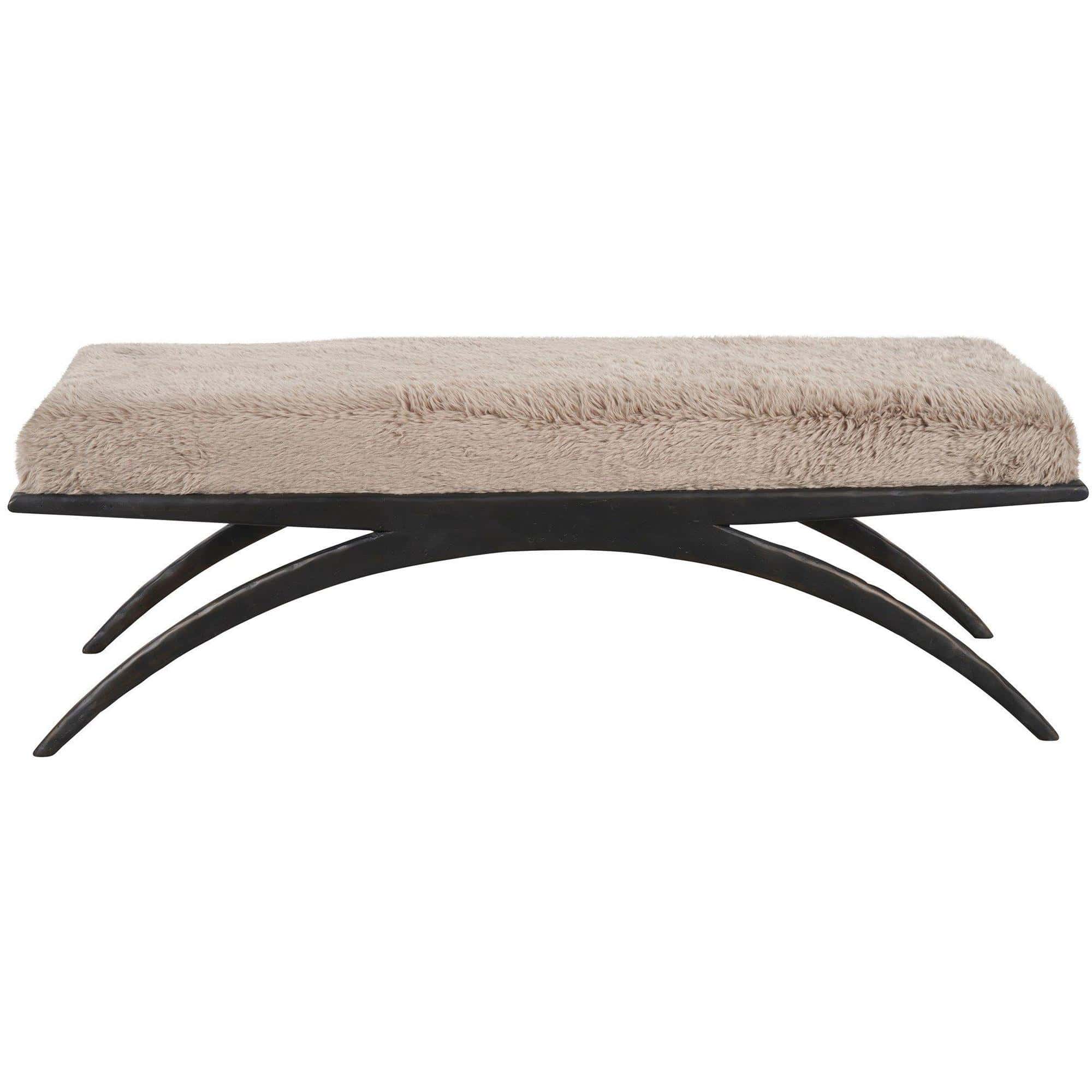 The Nola Bench presents a luxurious interplay of textures, featuring a sumptuously fuzzy seat in Yakety Yak Granite fabric atop a sleek, cast aluminum base finished in an elegant Bronze. The bench’s design, characterized by a subtle, minimalist curve, offers a sophisticated contrast between the tactile and the visual, creating a captivating piece that melds the warmth of texture with the clean lines of contemporary design.