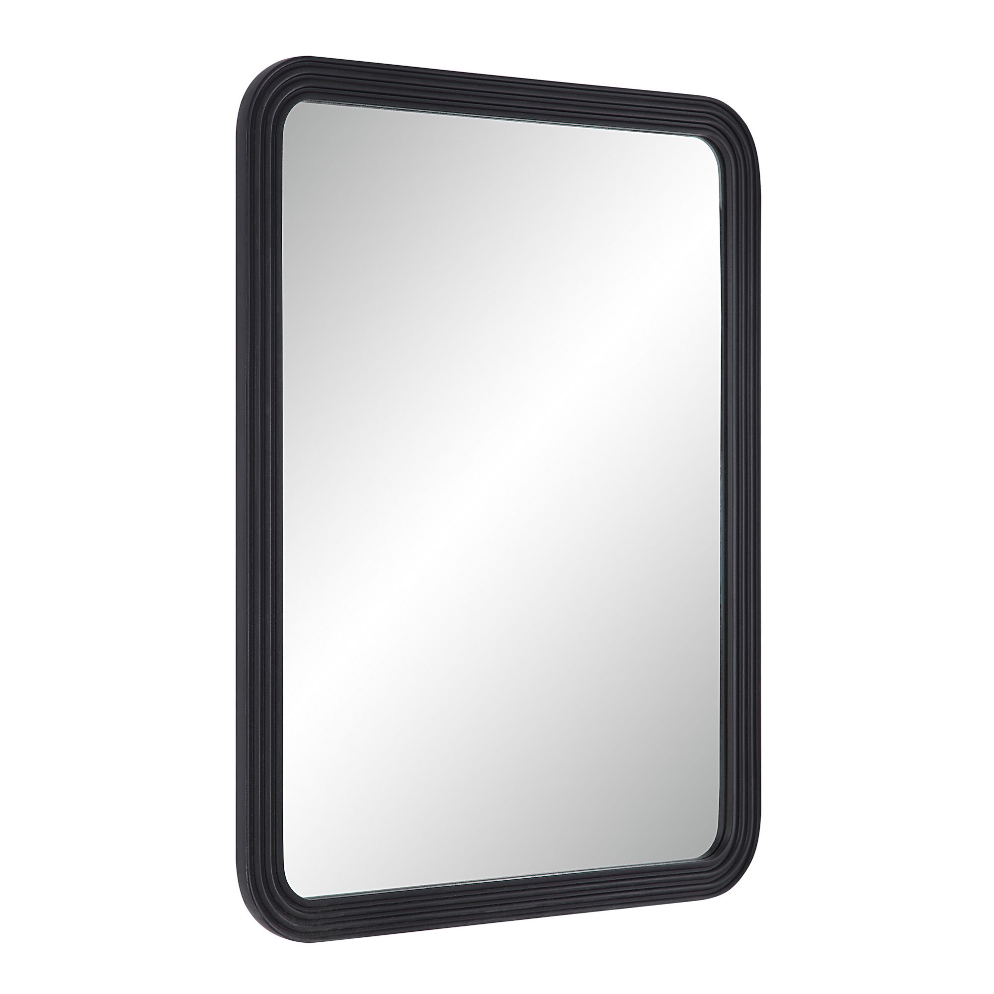 Upgrade your interior with our Nolana 40 Tall Rectangular Mirror in textured matte black. Made with a sturdy MDF frame, this mirror is built to last and exudes a sleek, versatile design. The D-ring hanging system makes it easy to install, and with four-way hanging capabilities, it offers versatile display options to suit any interior. A perfect complement to any room decor, this mirror is a statement piece that enhances the aesthetic of your space. With its standout design and impressive functionality, this mirror is a must-have for anyone looking to bring a touch of elegance to their interior design.