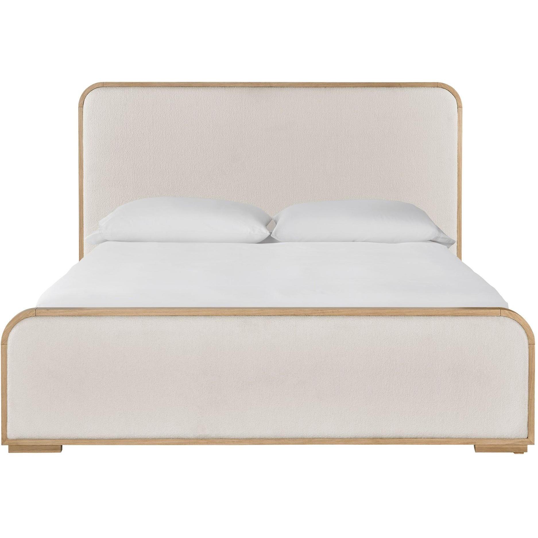 Simple yet inspired, the Upholstered Panel Bed combines a plush white body perfectly highlighted by a fresh, oak-finished frame.