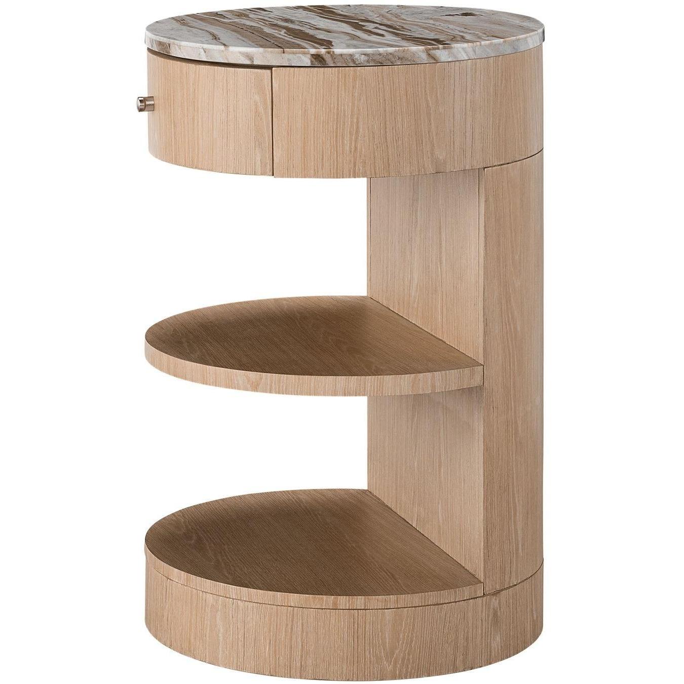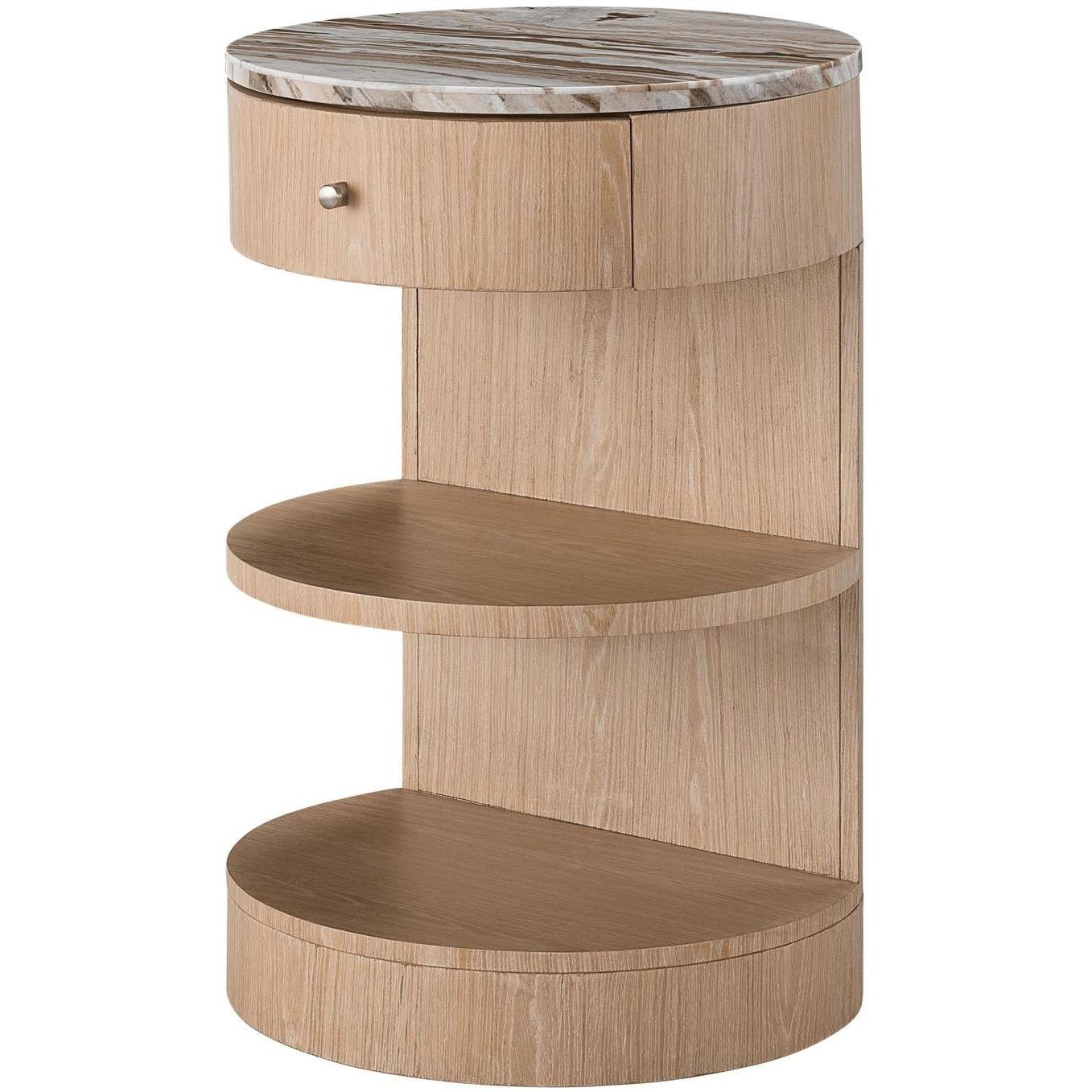 Showcasing a free-spirited silhouette, the Round Nightstand pushes design boundaries with its half-moon shaped shelves and a complementing marble top.