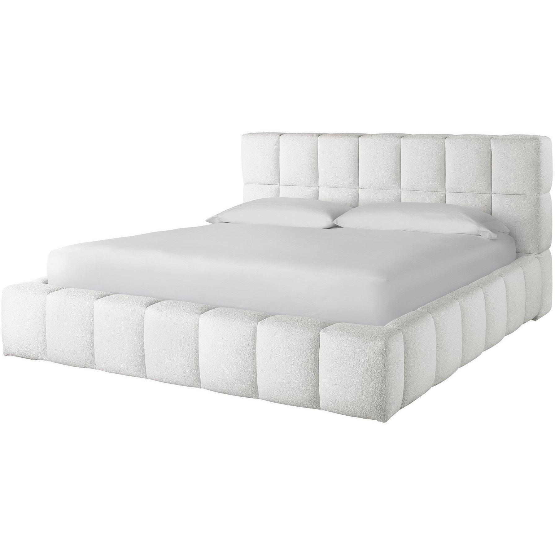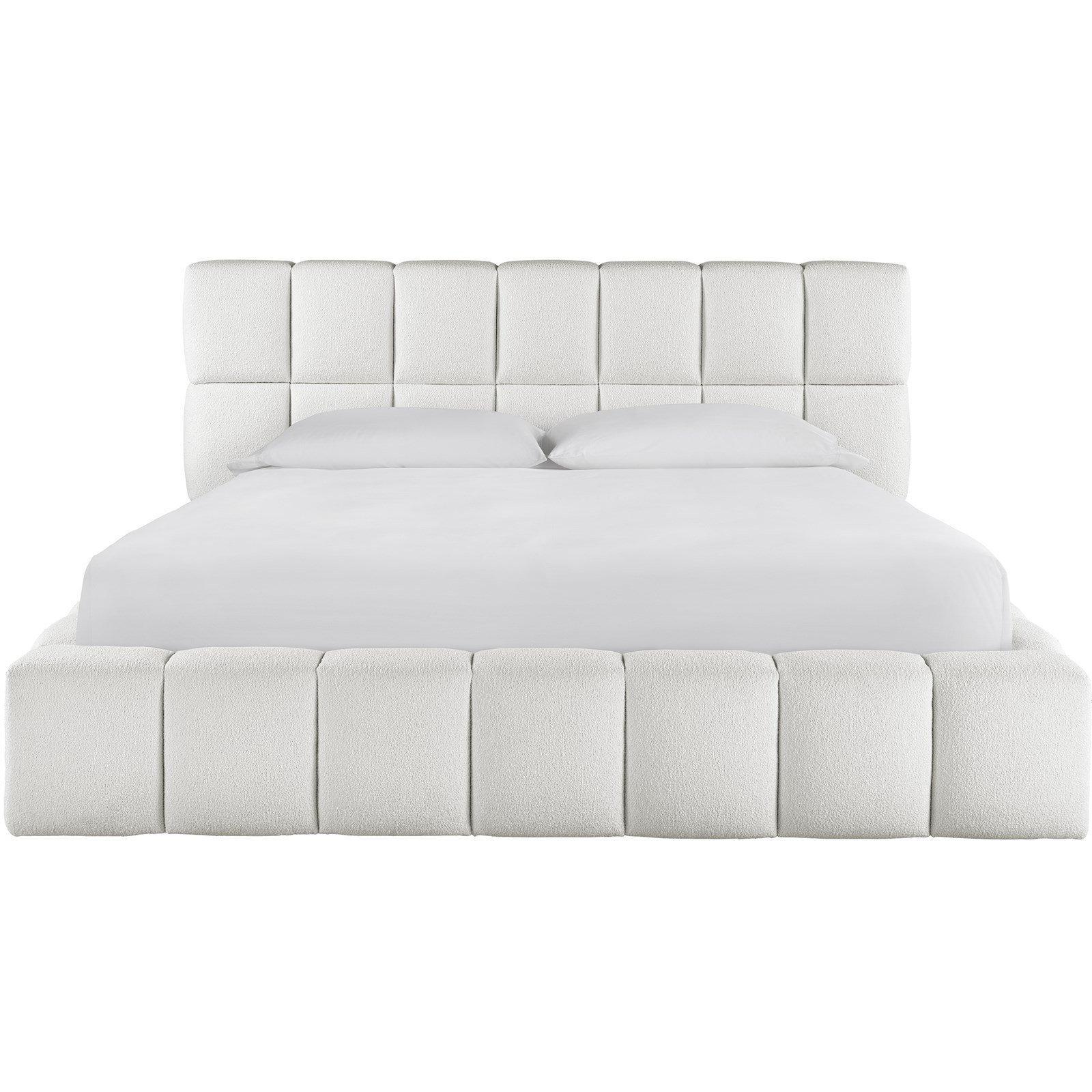 Center bedroom dwellings with the Upholstered Platform Bed, a comfort-forward piece formed with a series of rolled cubes in a plush fabric.