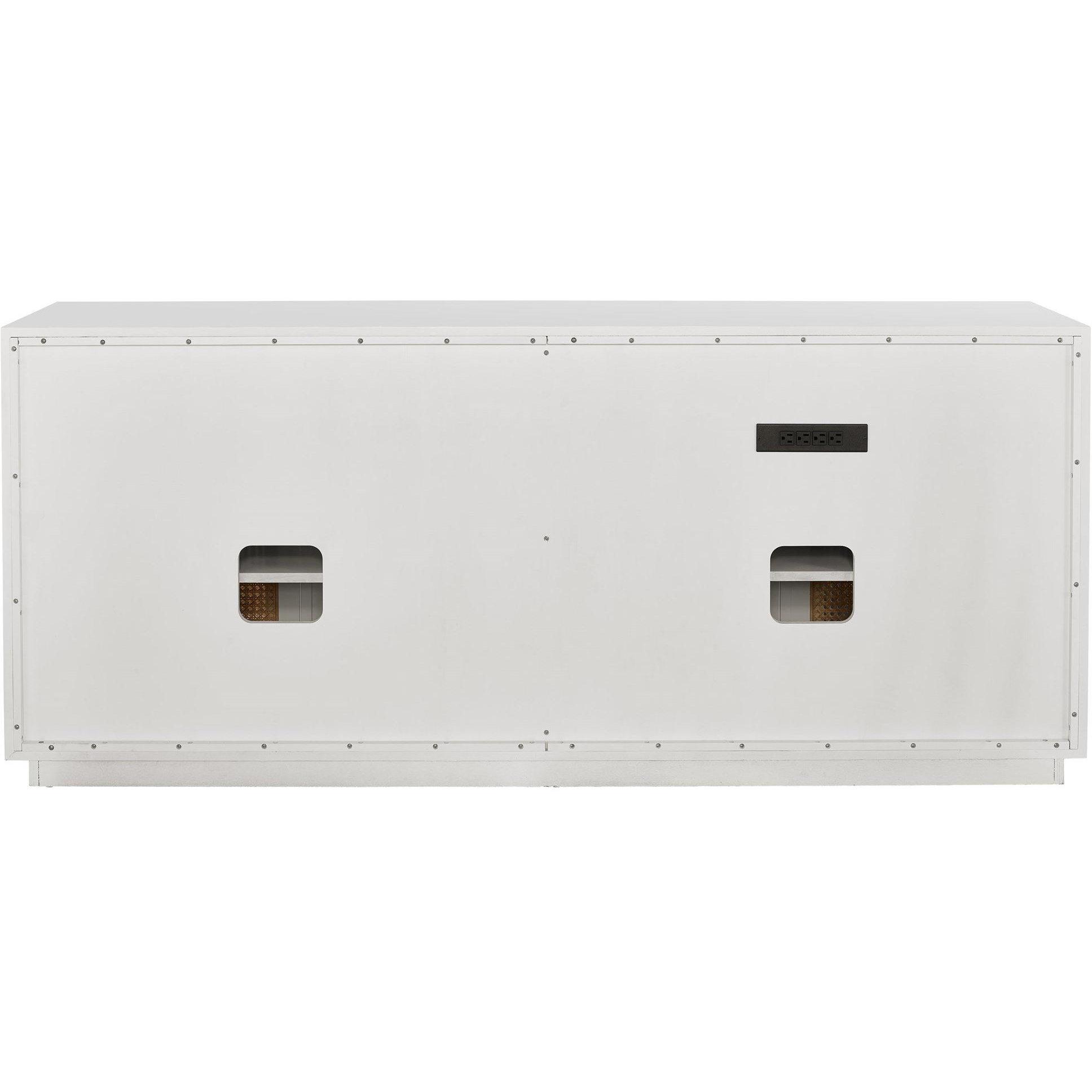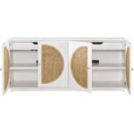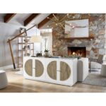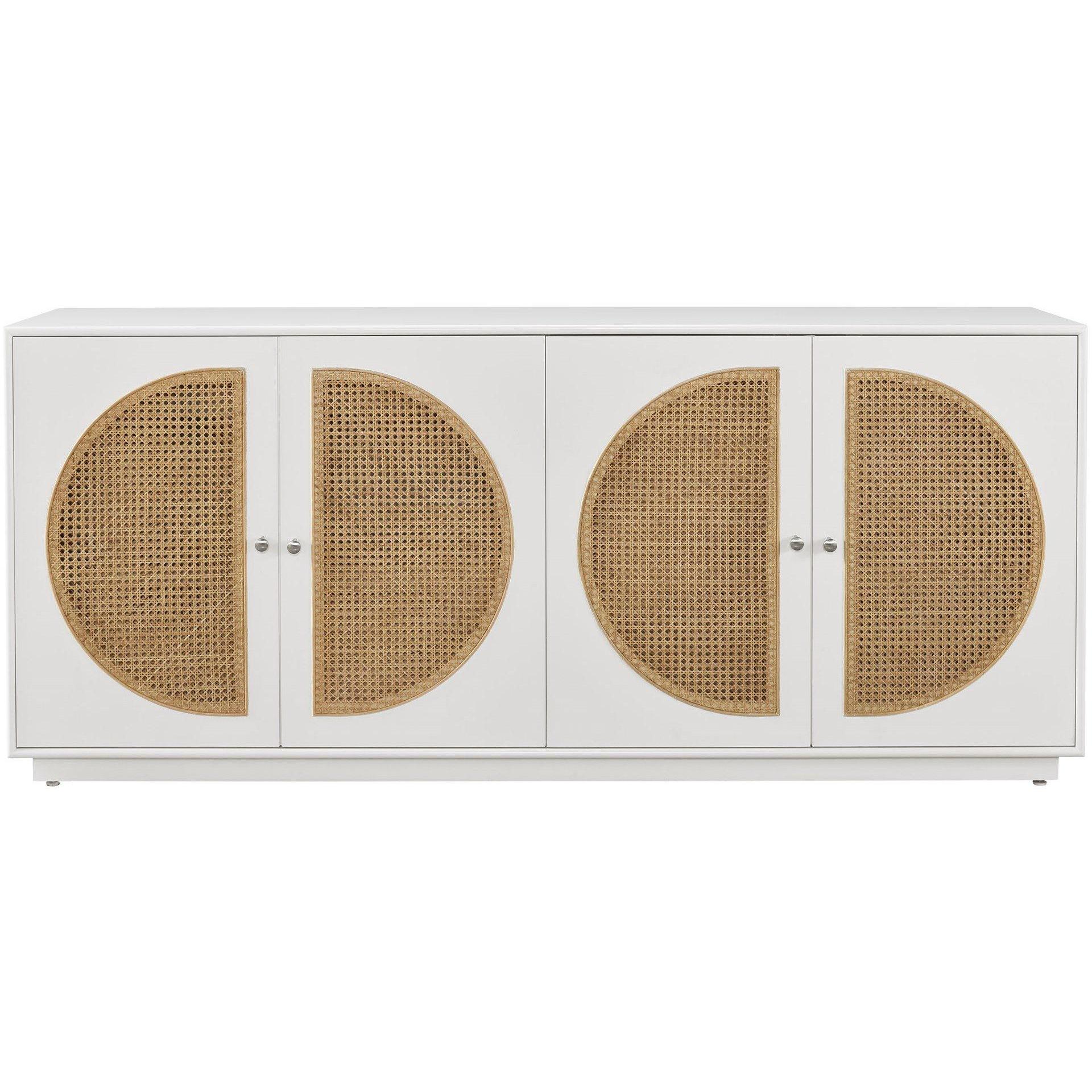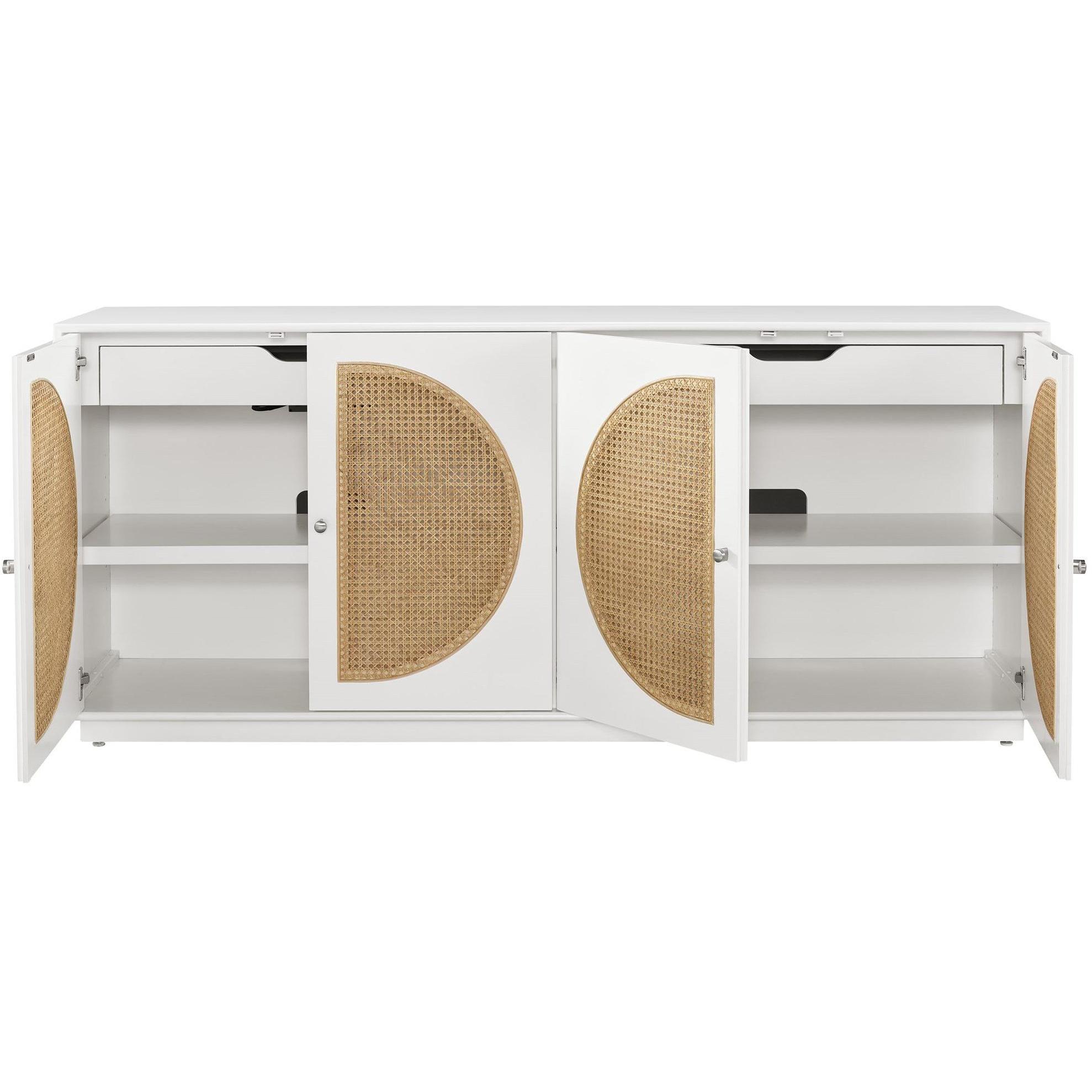 Bright and full of life, the Entertainment Credenza creates a striking focal point for any home living space with textured, half-moon-shaped cane doors framed inside a sleek white body.