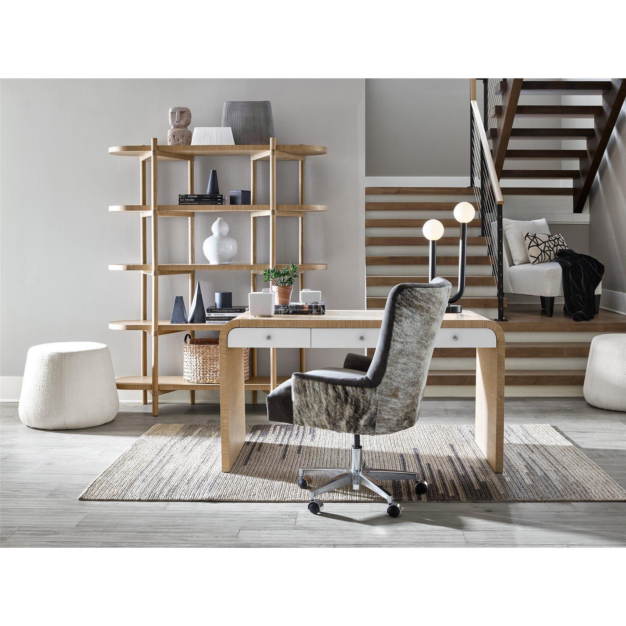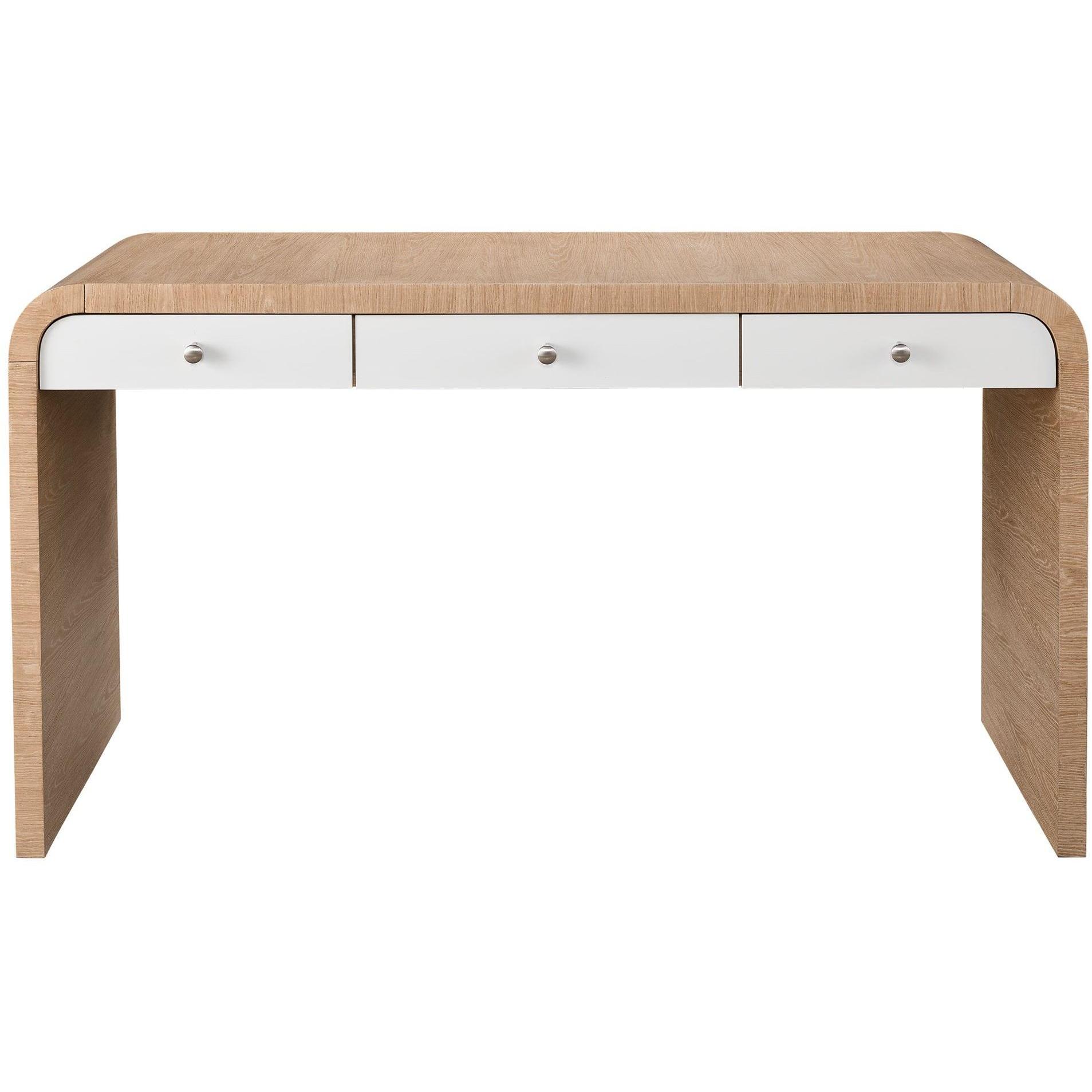 Introduce a natural flair to home office spaces with the Writing Desk, a staple accent piece showcasing three succinct drawers encased by a rounded, oak-finished frame.