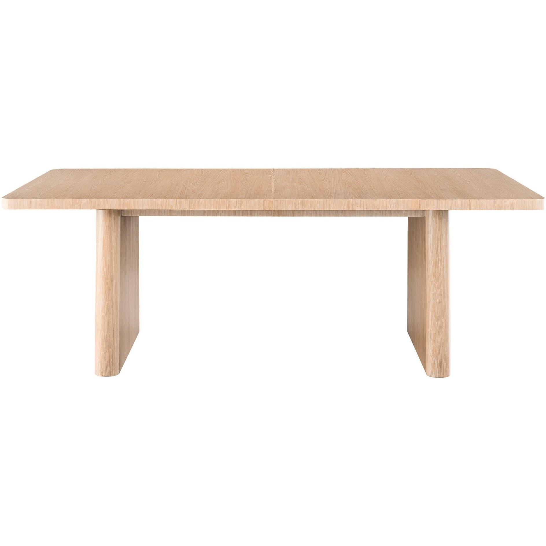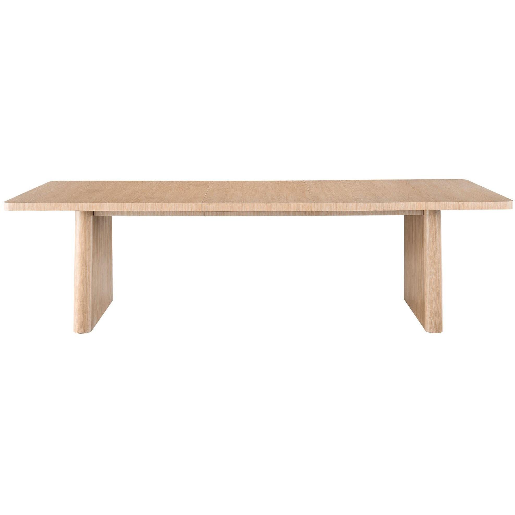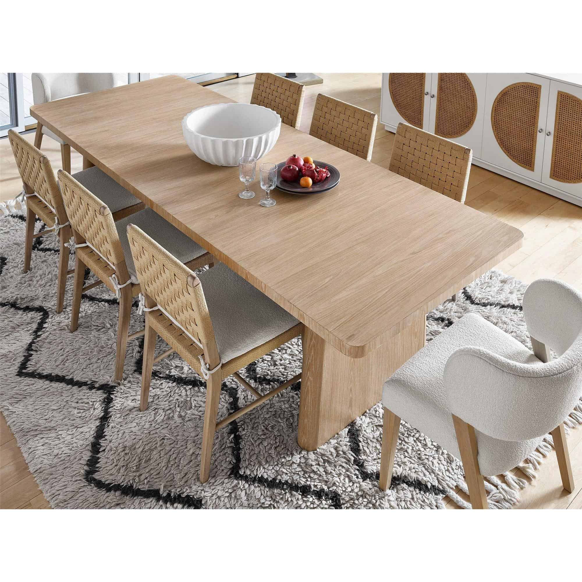 The Rectangular Dining Table instantly grounds interior aesthetics with its confident, fully oak-finished body and its robust, subtly-playful base.