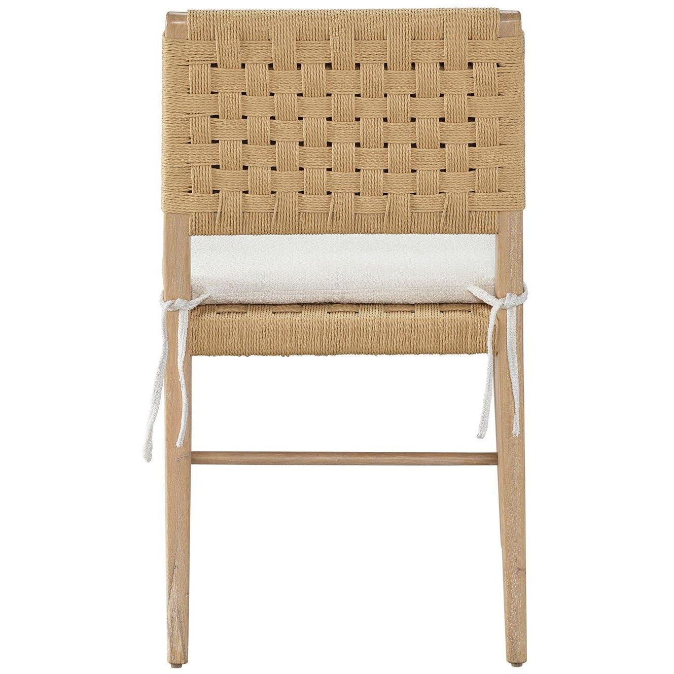 The lighthearted Woven Side Chair fuses a woven Danish cord back, oak-finished legs and a plush white seat cushion, making for a delightfully modern seat.