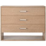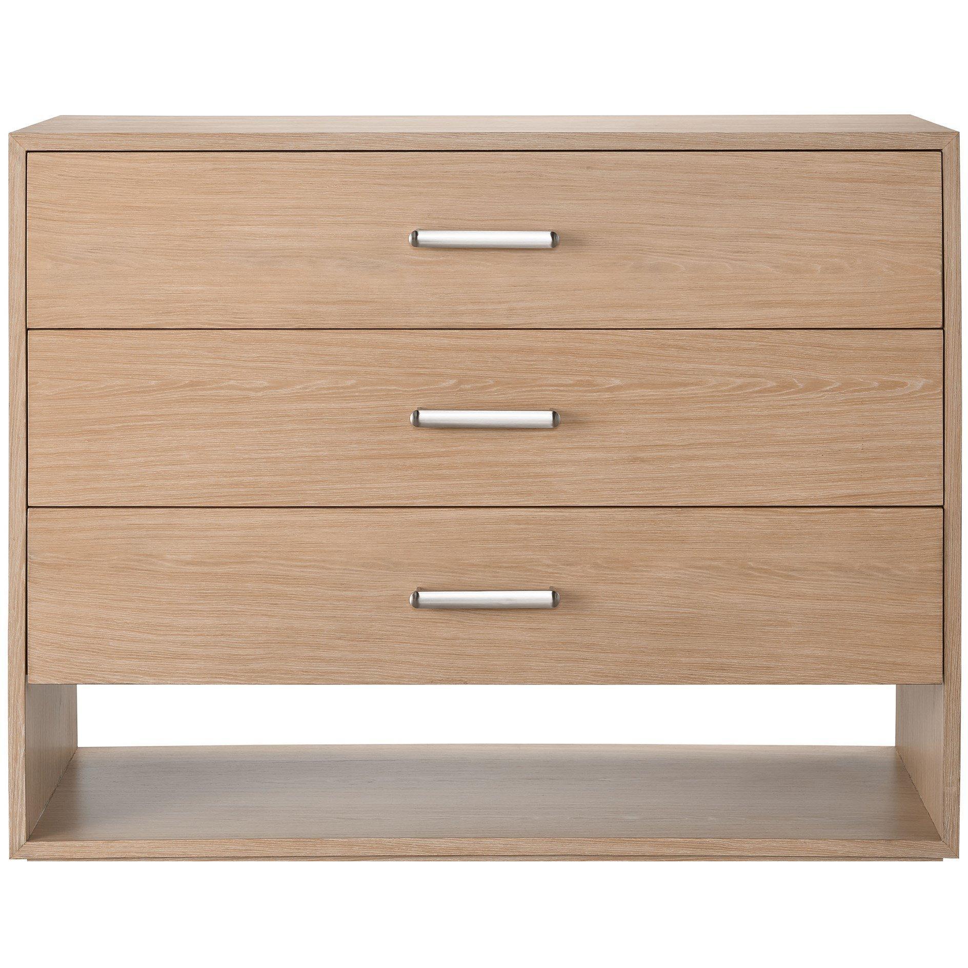 The Single Dresser will accentuate bedroom areas with both style and function, featuring three spacious drawers, a lower open-air shelf, and a dynamic pairing of an oak finish and modern bar hardware.