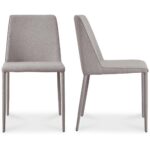 Pure, elegant simplicity defined. The Nora dining chair’s single shade of color blocking adds a touch of fine dining to any living space. An iron frame is covered in subtle grey fabric, both aesthetically pleasing and soft to the touch, while its square shape and minimal construction provide a beautiful contemporary design. For both casual and formal affairs, the Nora dining chair is a must-have.