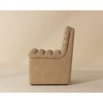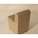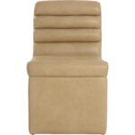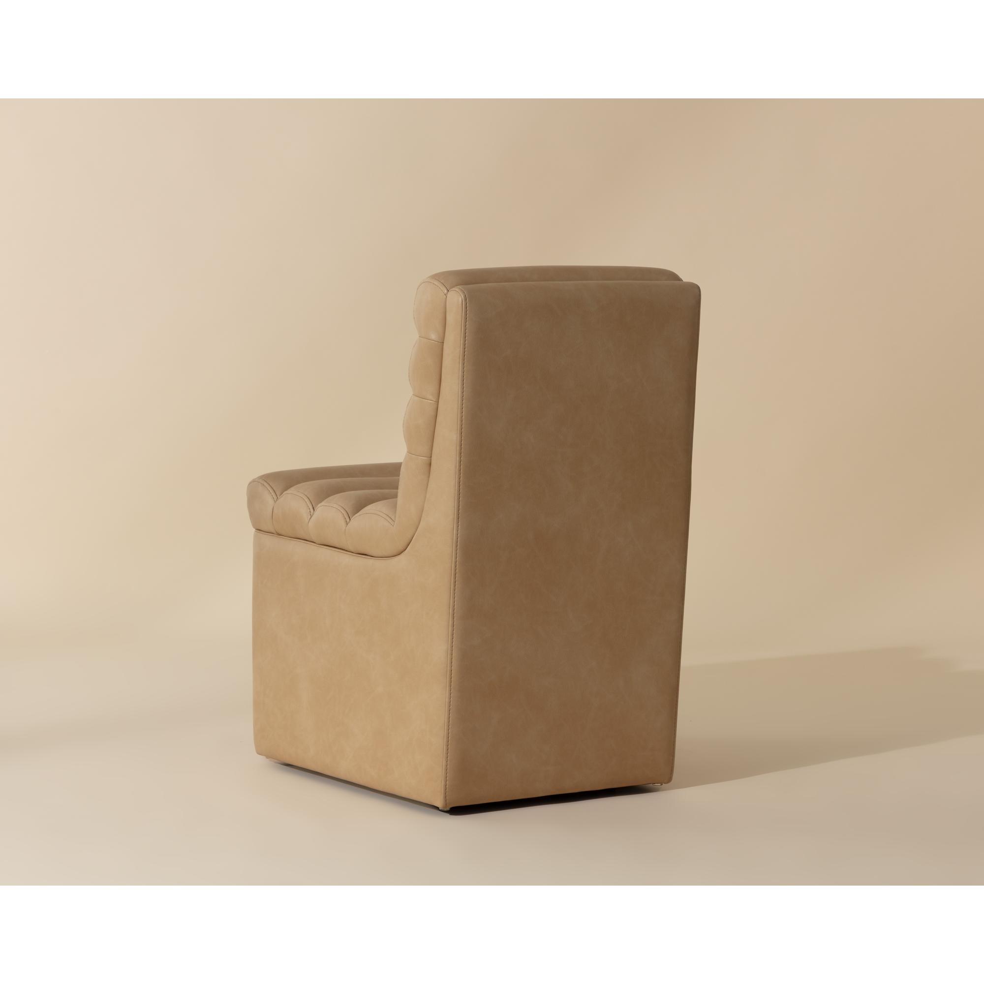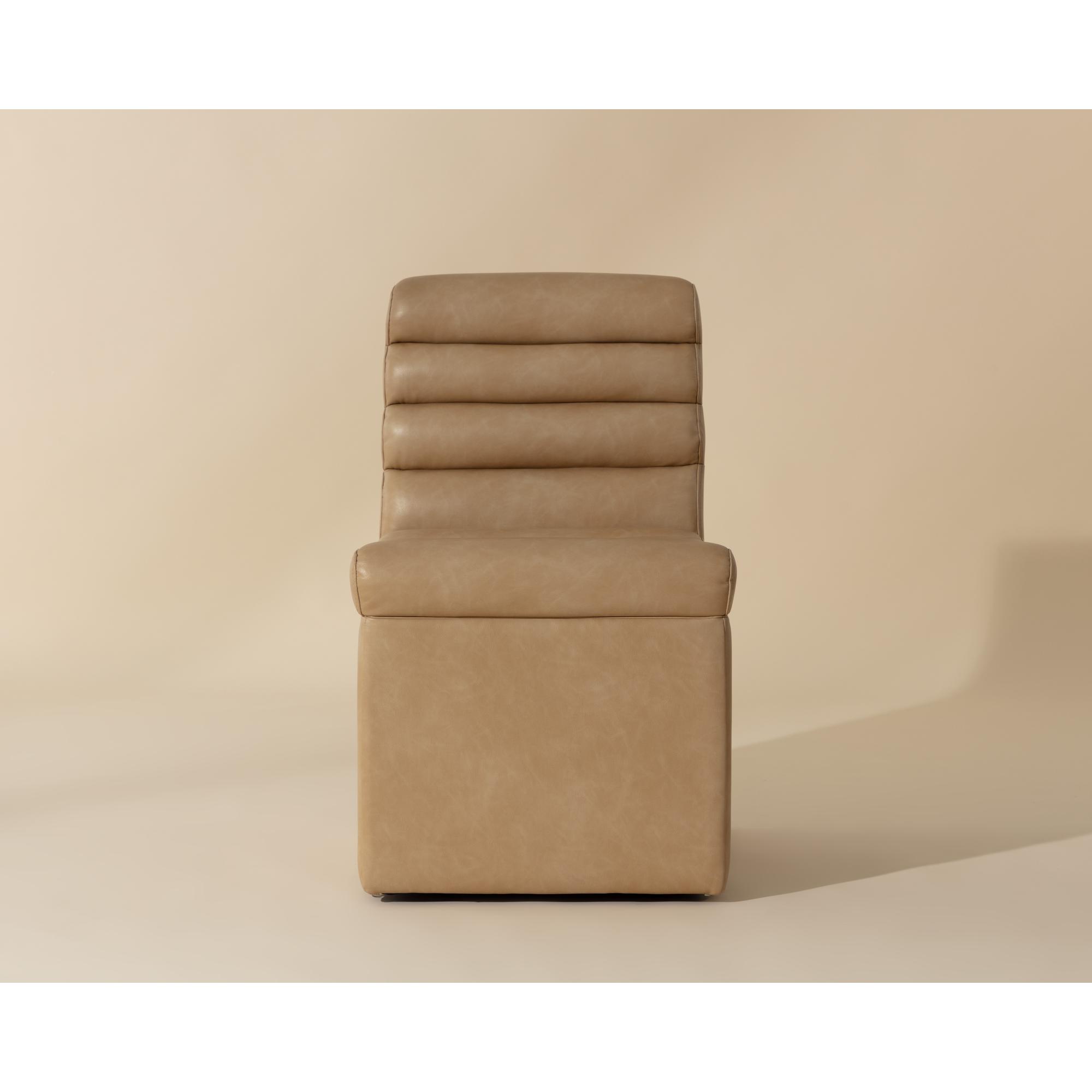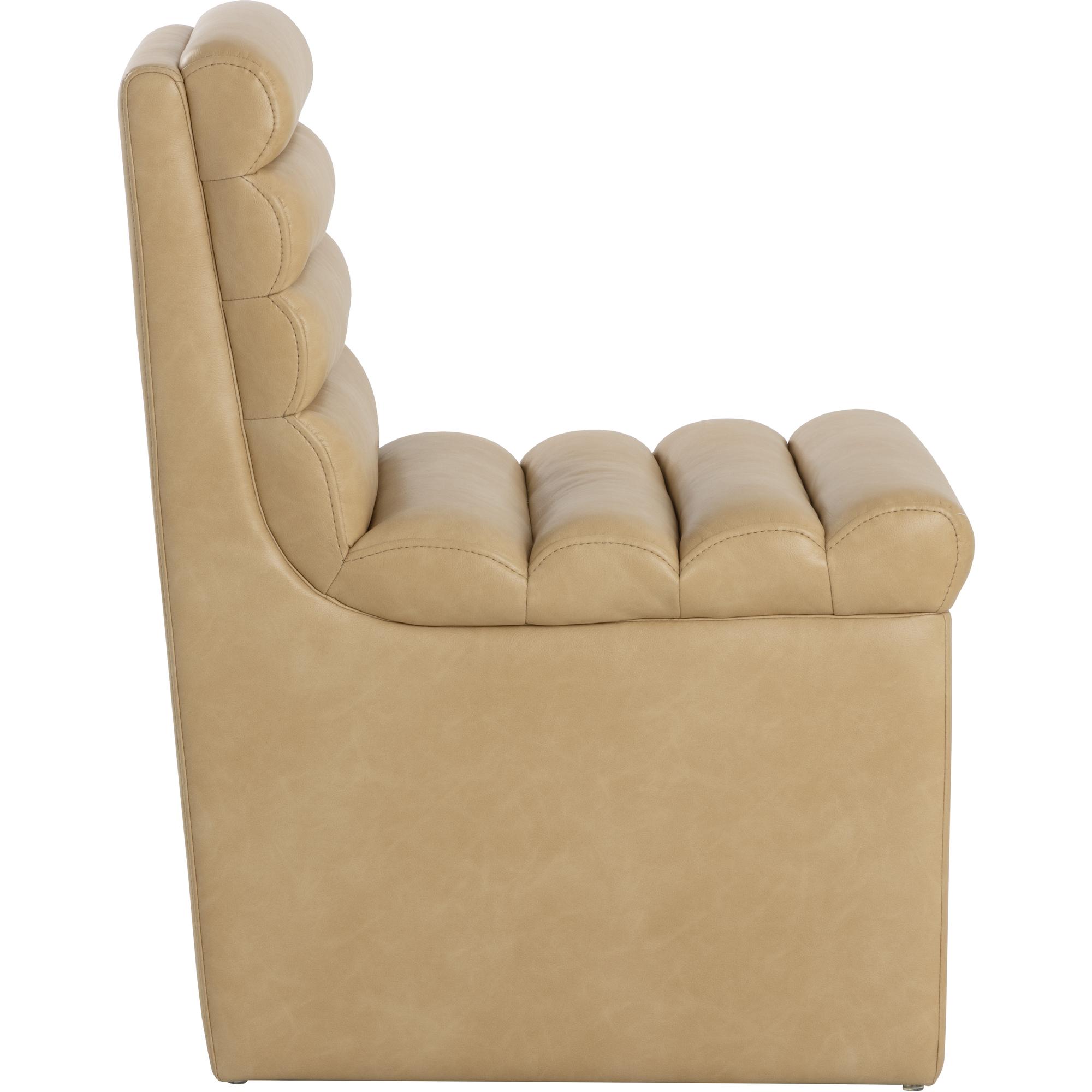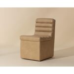 The Norm Wheeled Dining Chair features a modern silhouette with heavy channel cushioning that delivers luxe contours for an enjoyable sitting experience. Copley latte faux leather adds fresh appeal to this sculpted chair.