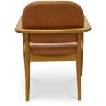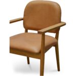The Norrie dining chair features a continuous frame that flows seamlessly from back to armrests. Crafted from rubber wood and upholstered in sumptuous top-grain leather, these chairs exude sophistication as the clean lines make them versatile for various dining settings.