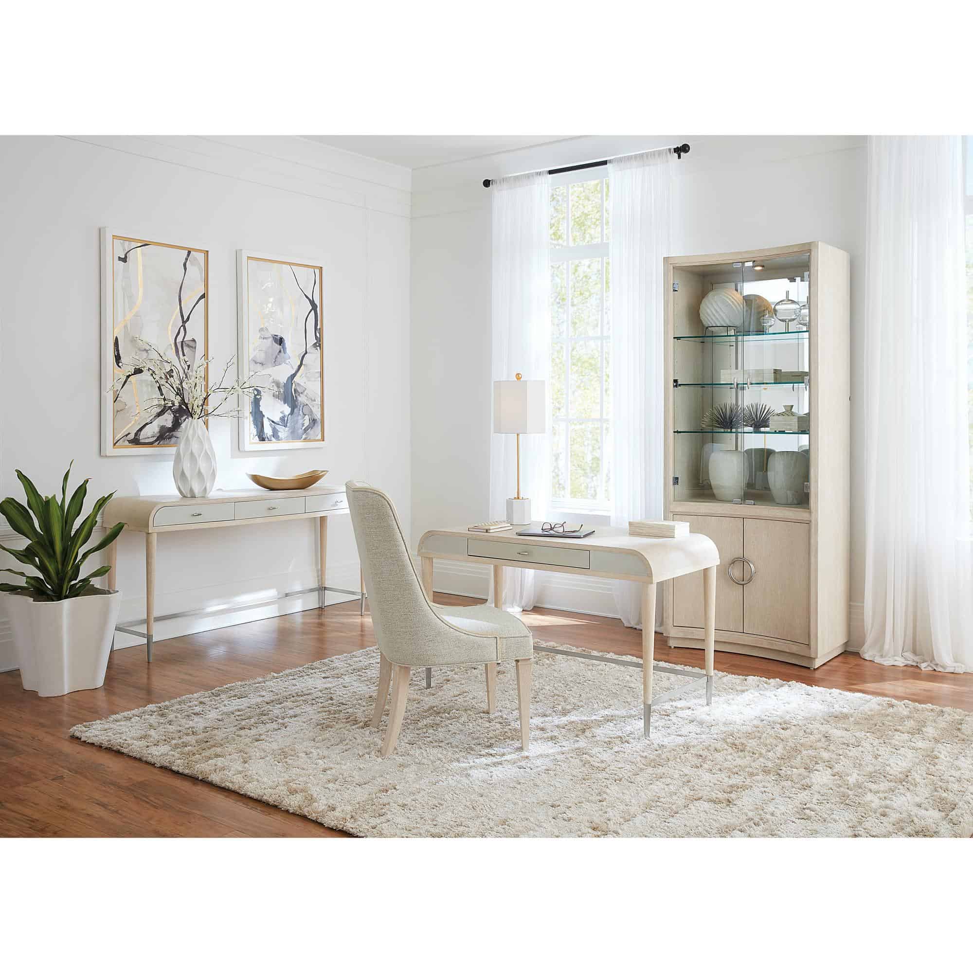 - Finish: Sandstone: cathedral and quartered oak veneers with light wire brushing along with transparent and opaque stains to create this serene finish.