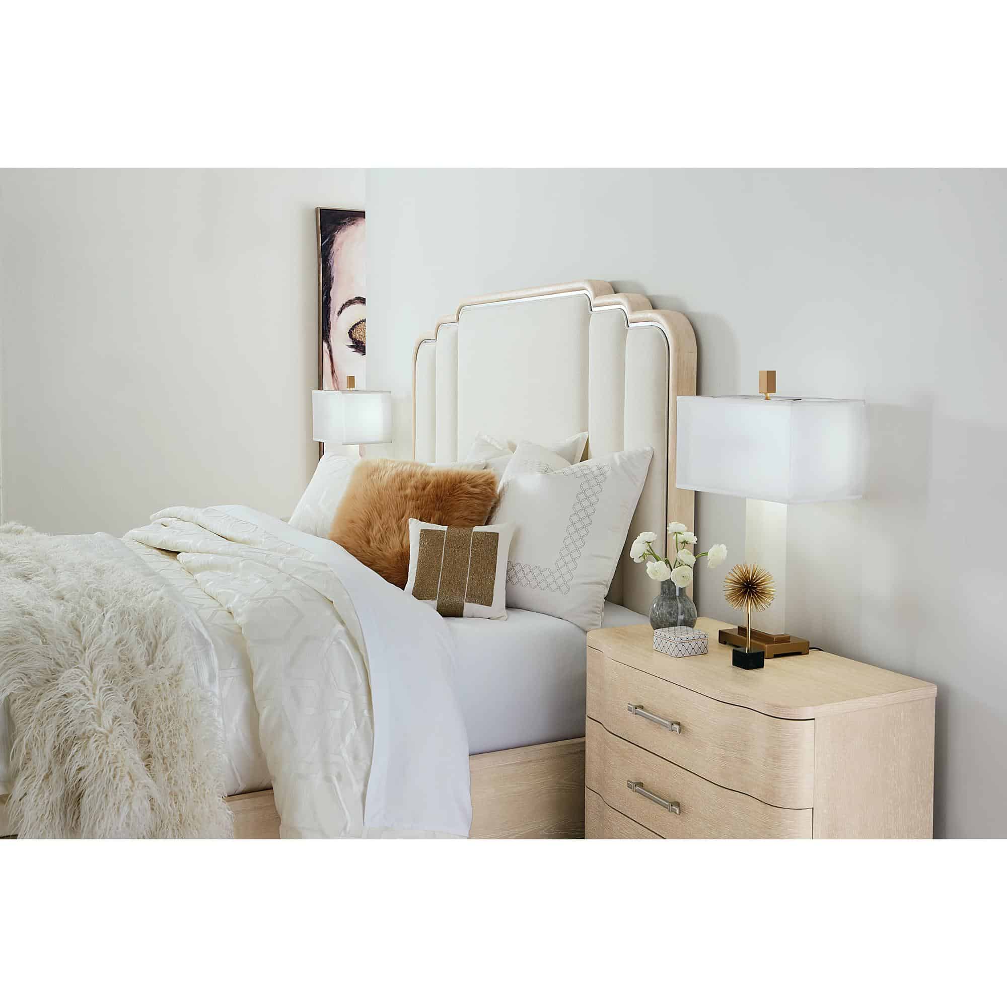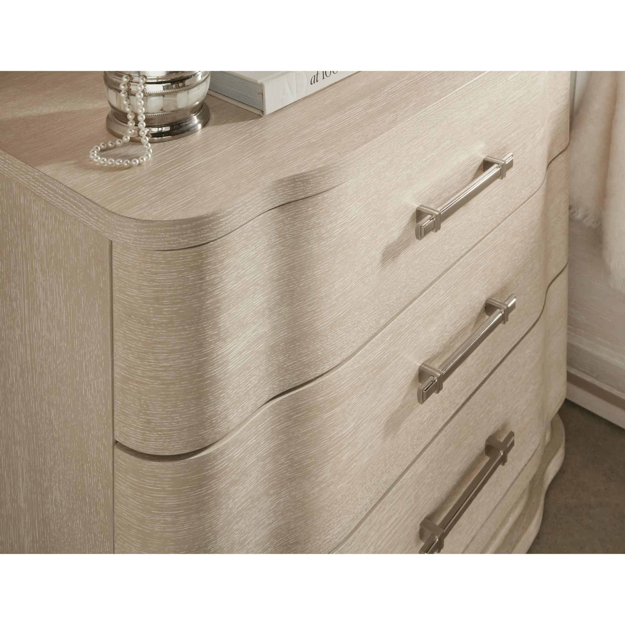 Finish: Sandstone: cathedral and quartered oak veneers with light wire brushing along with transparent and opaque stains to create this serene finish. Nickel finished bar pulls.