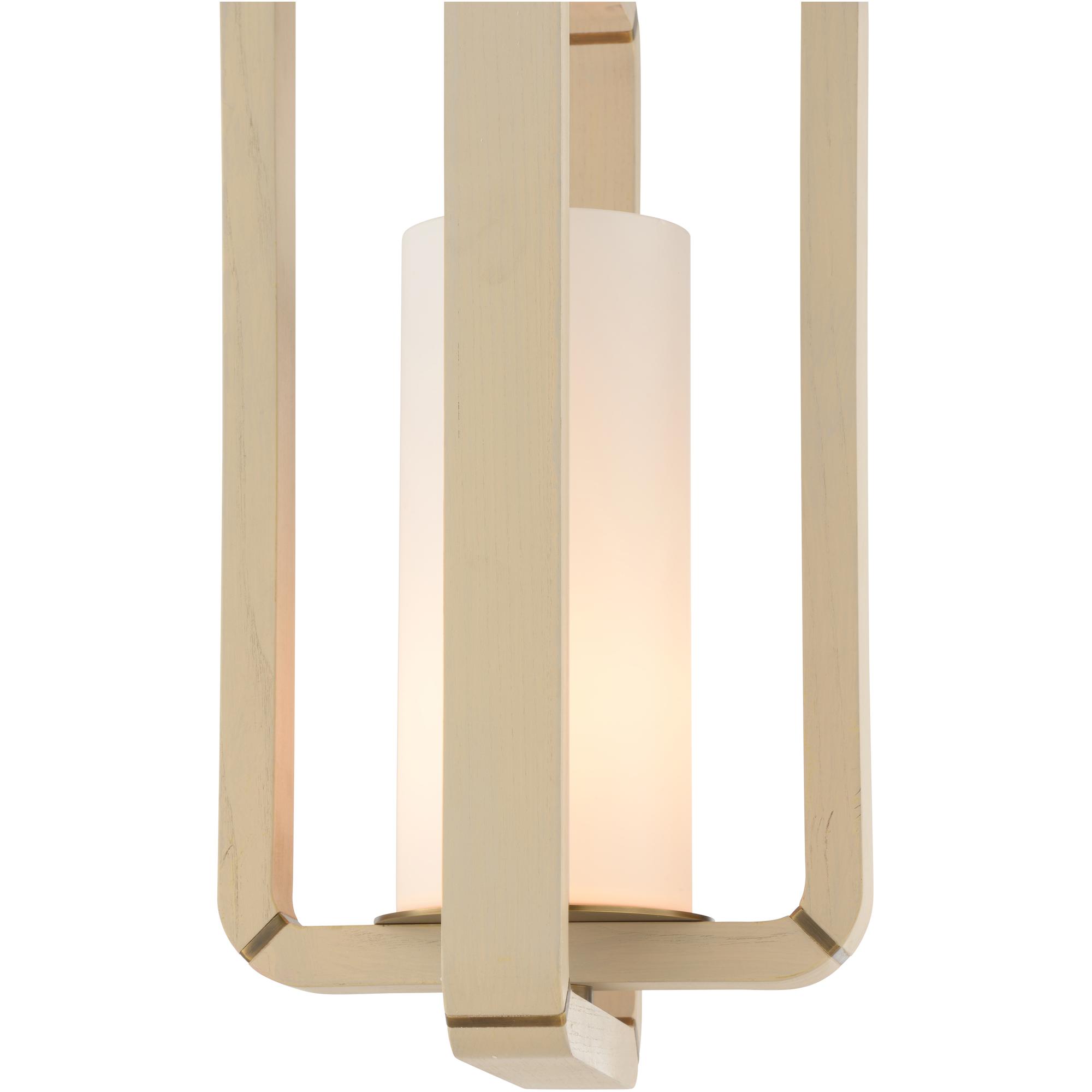 Introducing the Oak Island Pendant, where seaside charm meets contemporary design. Crafted with precision, bleached wood forms a geometric framework, encapsulating a cylindrical milk glass core. Whether suspended over a kitchen island or in an entryway, this pendant radiates warmth and sophistication, casting a soft, inviting glow while adding a touch of coastal-inspired elegance to any space.