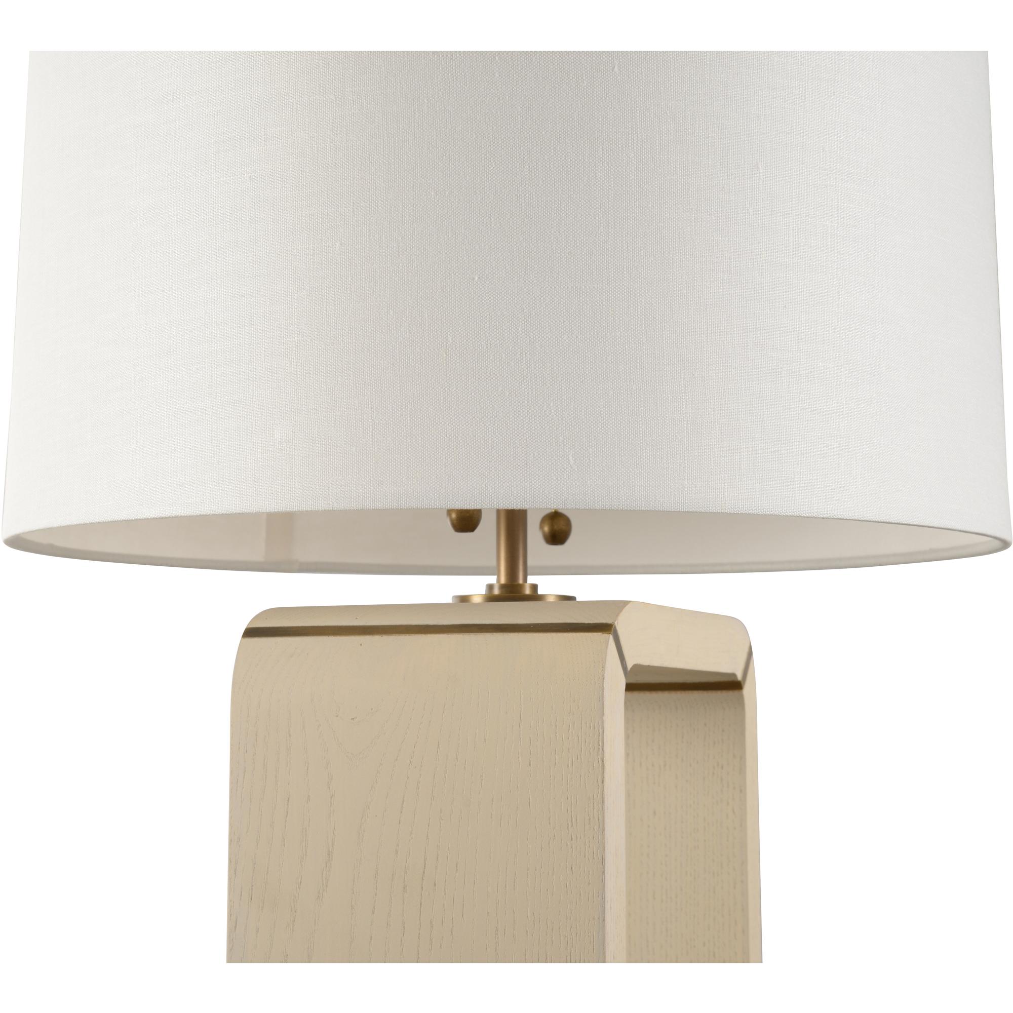 Crafted of bleached wood and antique brass, the coastal-inspired Oak Island Table Lamp features an open design, perfect for letting your wallpaper, paint color or view shine through.