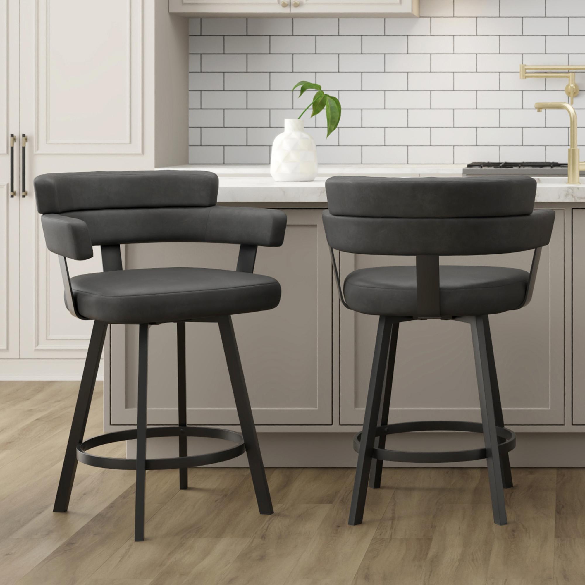 Oberon 26″ Counter Stool with Swivel, set of 2 in Charcoal and Black
