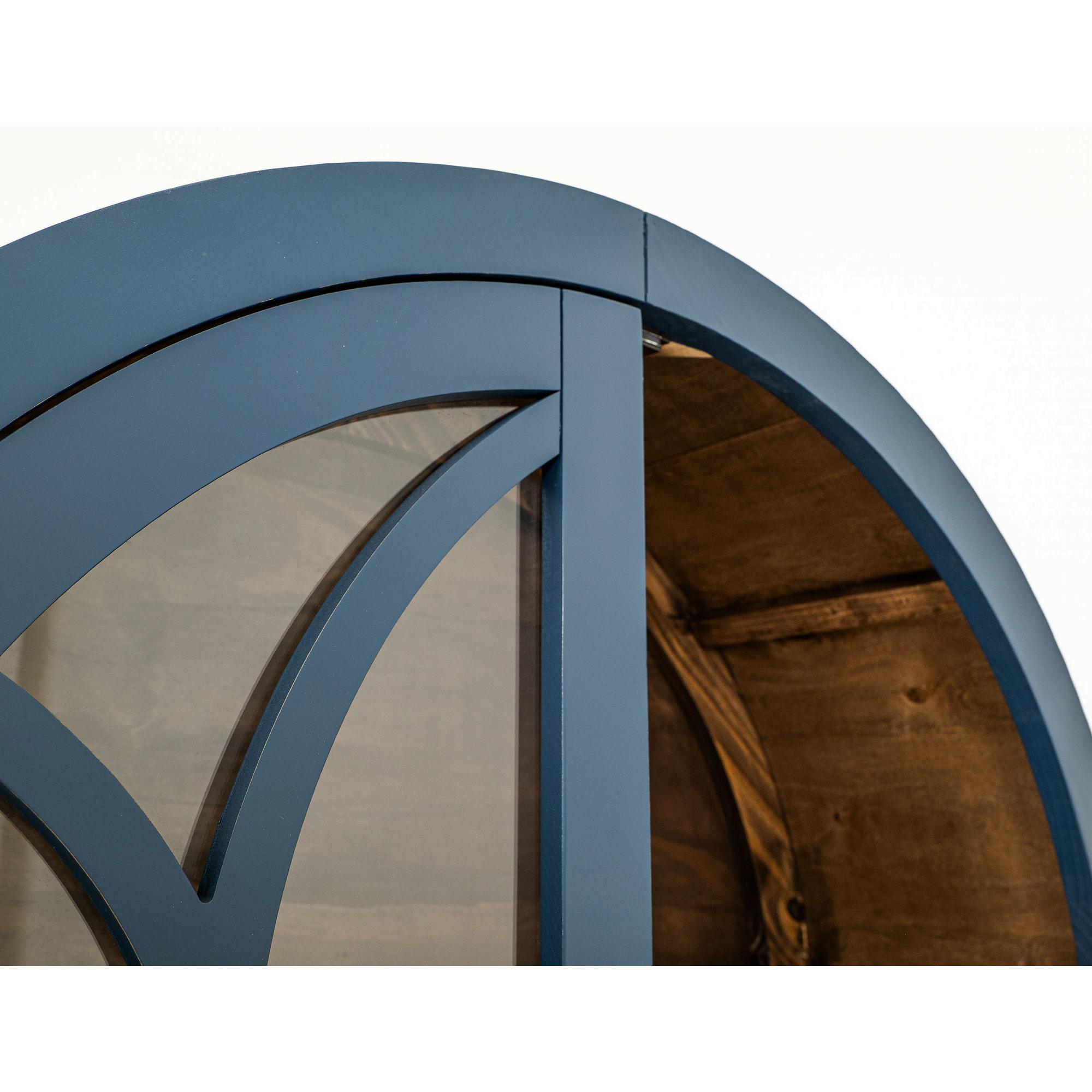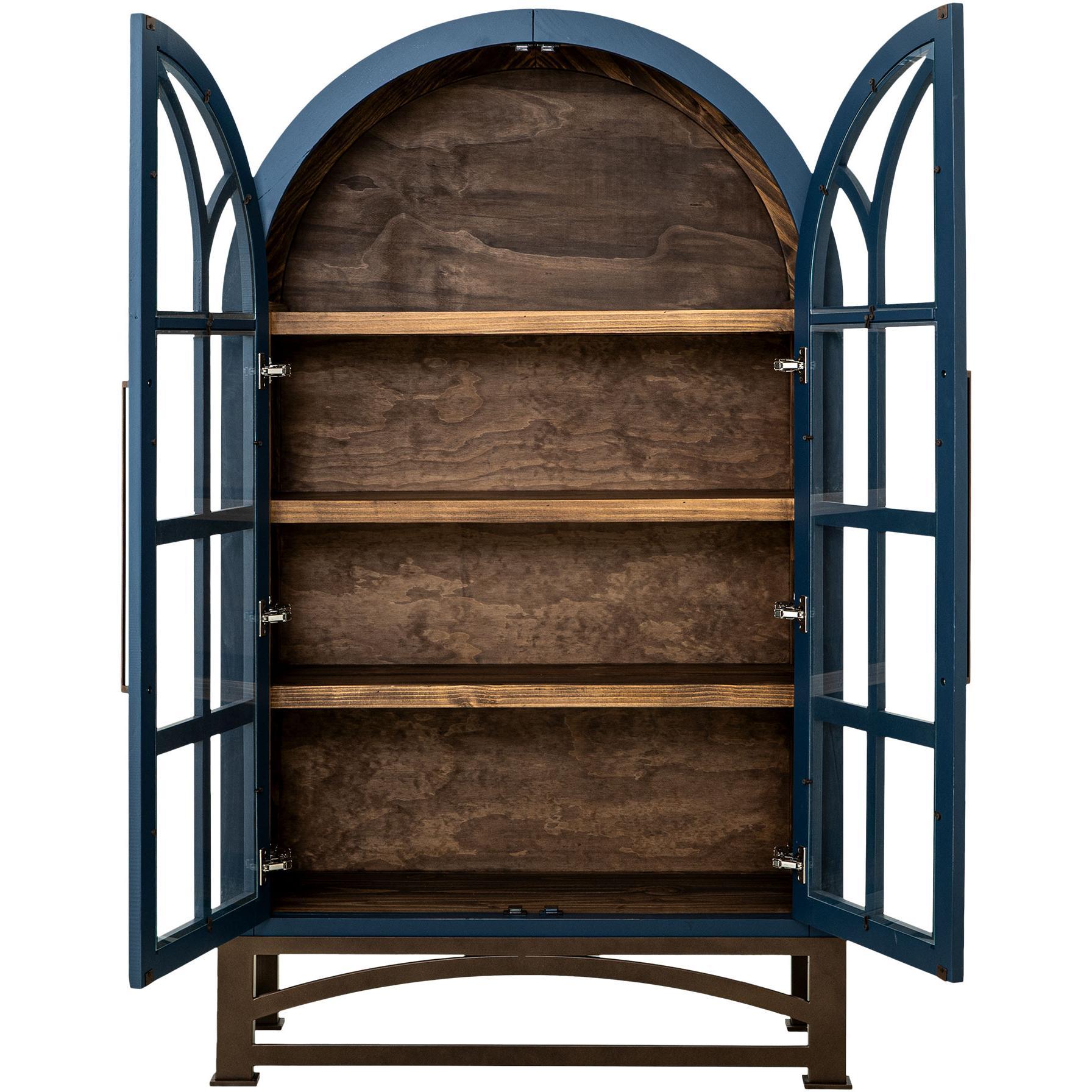 Drawing inspiration from Mid-18th century French furniture, our Obsidian cabinets seamlessly blend the charm of the old world with contemporary design. Crafted from lightly distressed pine wood and elegantly set within a metal base, this cabinet features a beautifully paneled oval glass door, making it a timeless addition to your home.