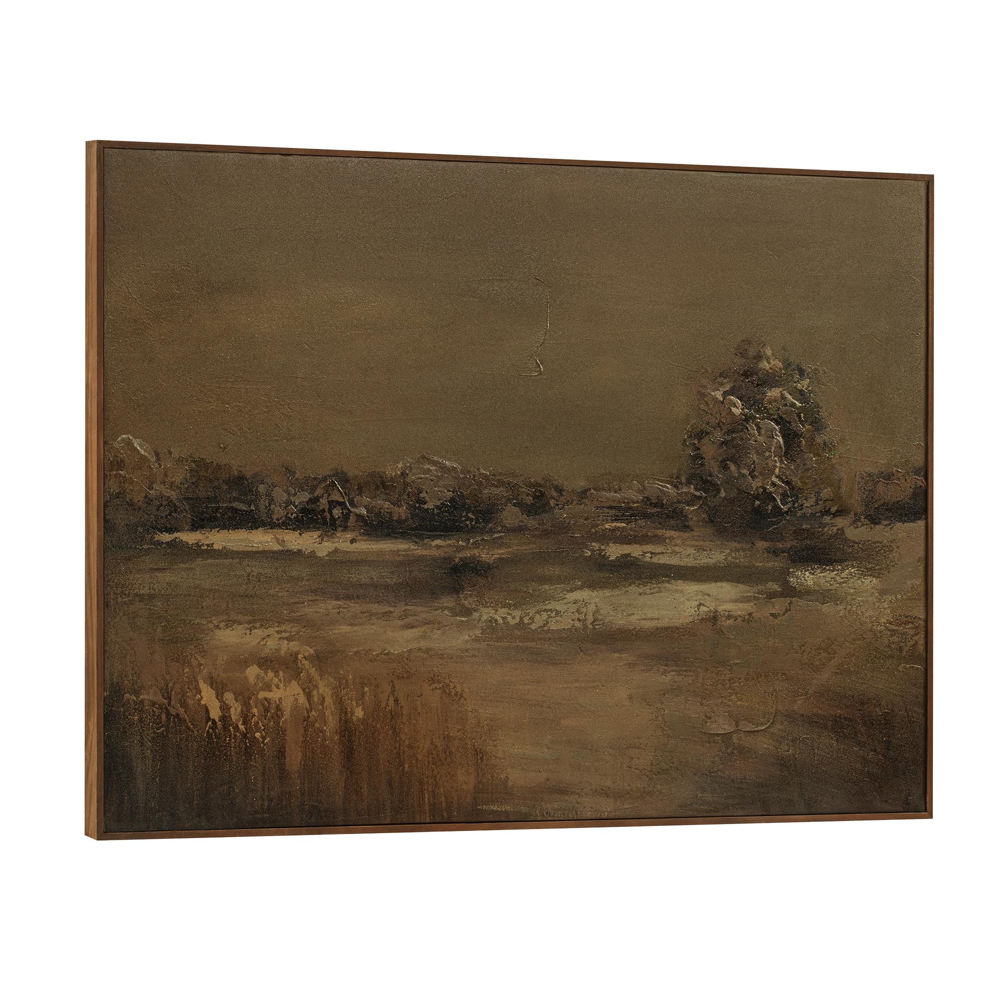 The Ode framed painting is a lyrical celebration of the countryside, blending verdant tones with an air of mystery. Its eternal, understated elegance and tonal palette evoke a warm, heritage feel, while the textured layers of acrylic paint suggest a depth that invites introspection.
