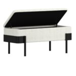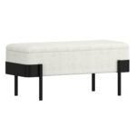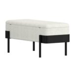 Add a touch of refined texture to your living space with this storage ottoman, a perfect blend of comfort and style. Upholstered in luxurious boucle fabric, the plush top invites you to sit or rest your feet in ultimate coziness. The ottoman’s standout feature is the wrapped metal frame which adds a touch of modern craftsmanship. This piece is perfect as a bench for extra seating, or a stylish footrest that enhances any room and adds the convenient option of hidden storage.