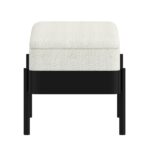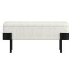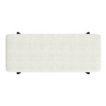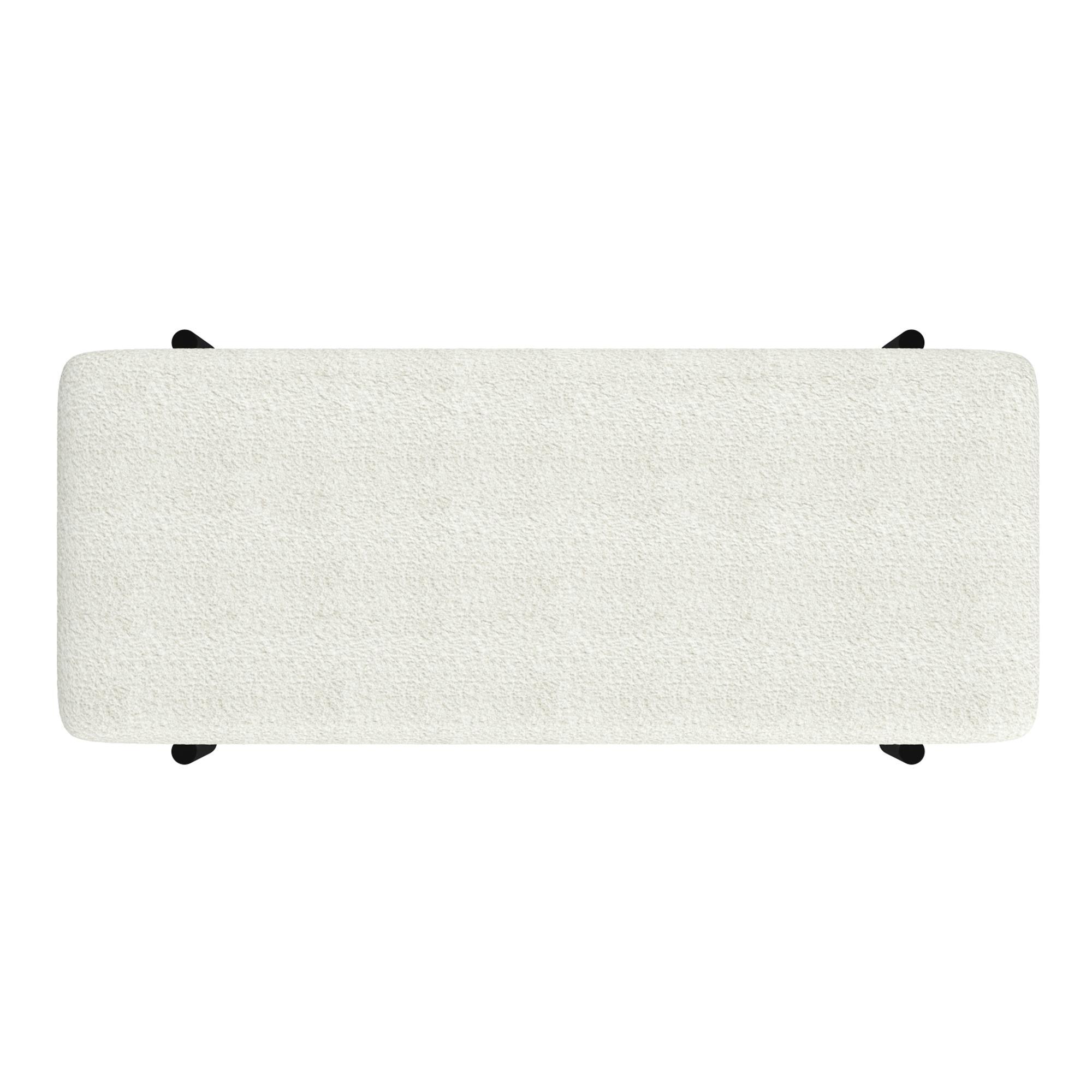 - Soft, ivory boucle fabric upholstery and black metal frame and legs