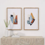 The beauty of contrasting vibrant hues is on full display in this set of two wall art prints. The walnut frames not only complement each graphic but lend an enveloping warmth to the pieces that pours into the home interior. Well-suited for mid-century modern and creative-inspired classic spaces alike, these pieces make the living room or home office space feel complete.