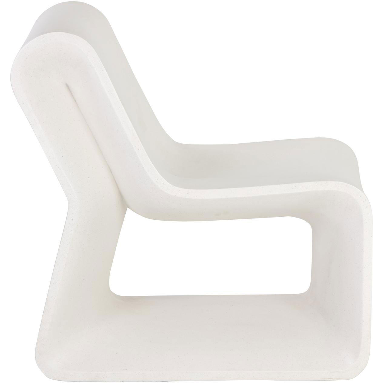 This sculptural, contemporary lounge chair will draw attention through any space. Crafted from a natural concrete mix, each piece will look different, with variations of white hues that will enhance over time. Suitable for indoor and covered outdoor spaces.