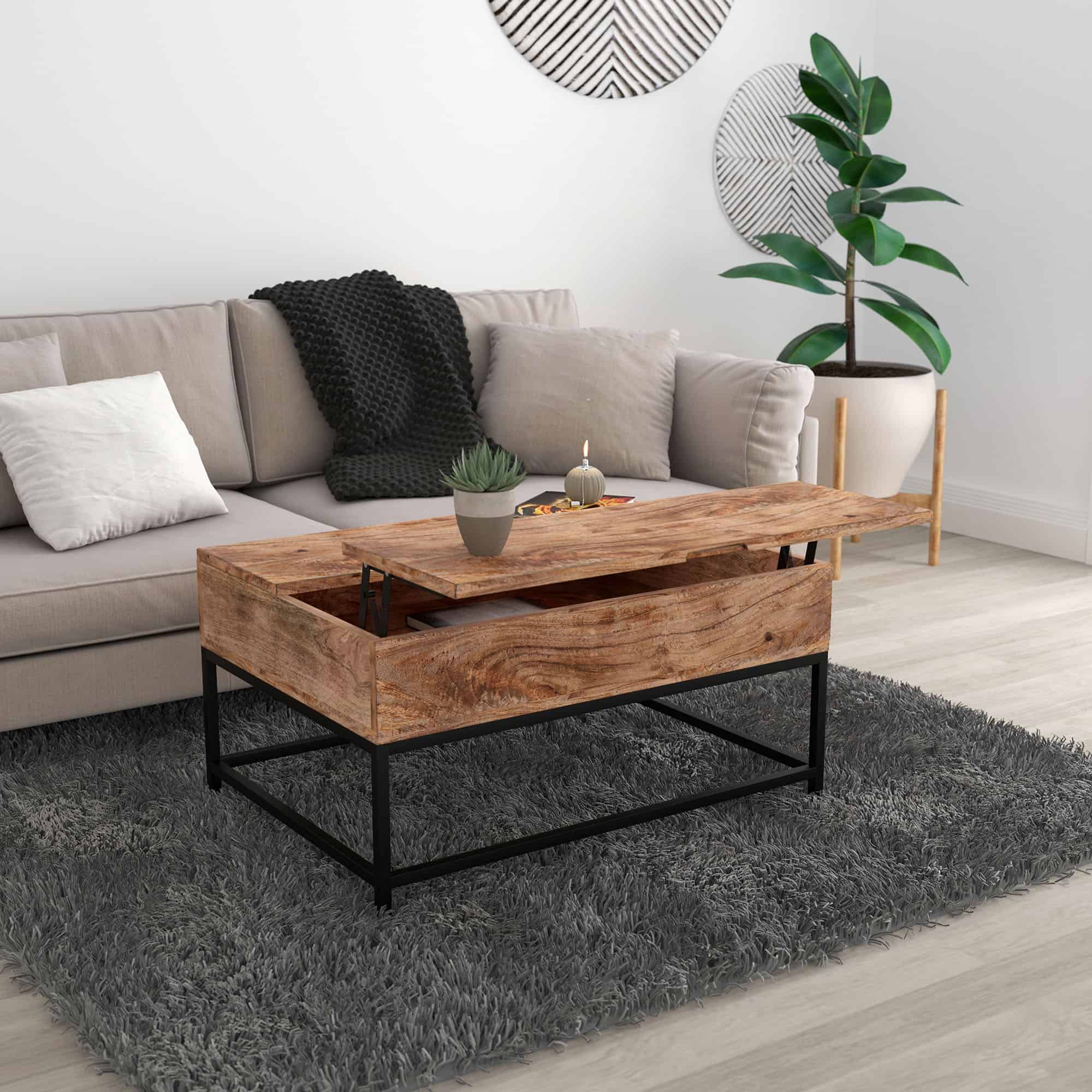 Ojas Lift-Top Coffee Table in Natural Burnt and Black