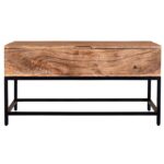 This rustic modern coffee table has a lift-top storage compartment that creates a spacious hideaway for things that you want out of the way but still within reach – think throw blankets, gaming consoles and controllers, board games, and photo albums. The table lifts easily and, when pulled open, can create a handy eating surface so your binge-watching can go uninterrupted. The sustainable solid wood table top is finished beautifully in a natural burnt finish, preserving the accentuating features of the mango wood. Great for a casual living space, in a cottage or rec room.
