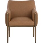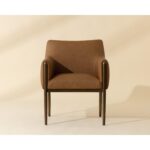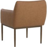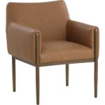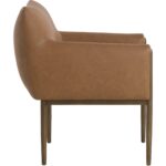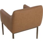 The Olea Lounge Chair is the masterful union of mid-century technique and contemporary ease. Versatile enough to accompany any space and boasting a charming silhouette with bronze powder-coated steel legs that emphasize the smooth texture of milliken cognac faux leather.