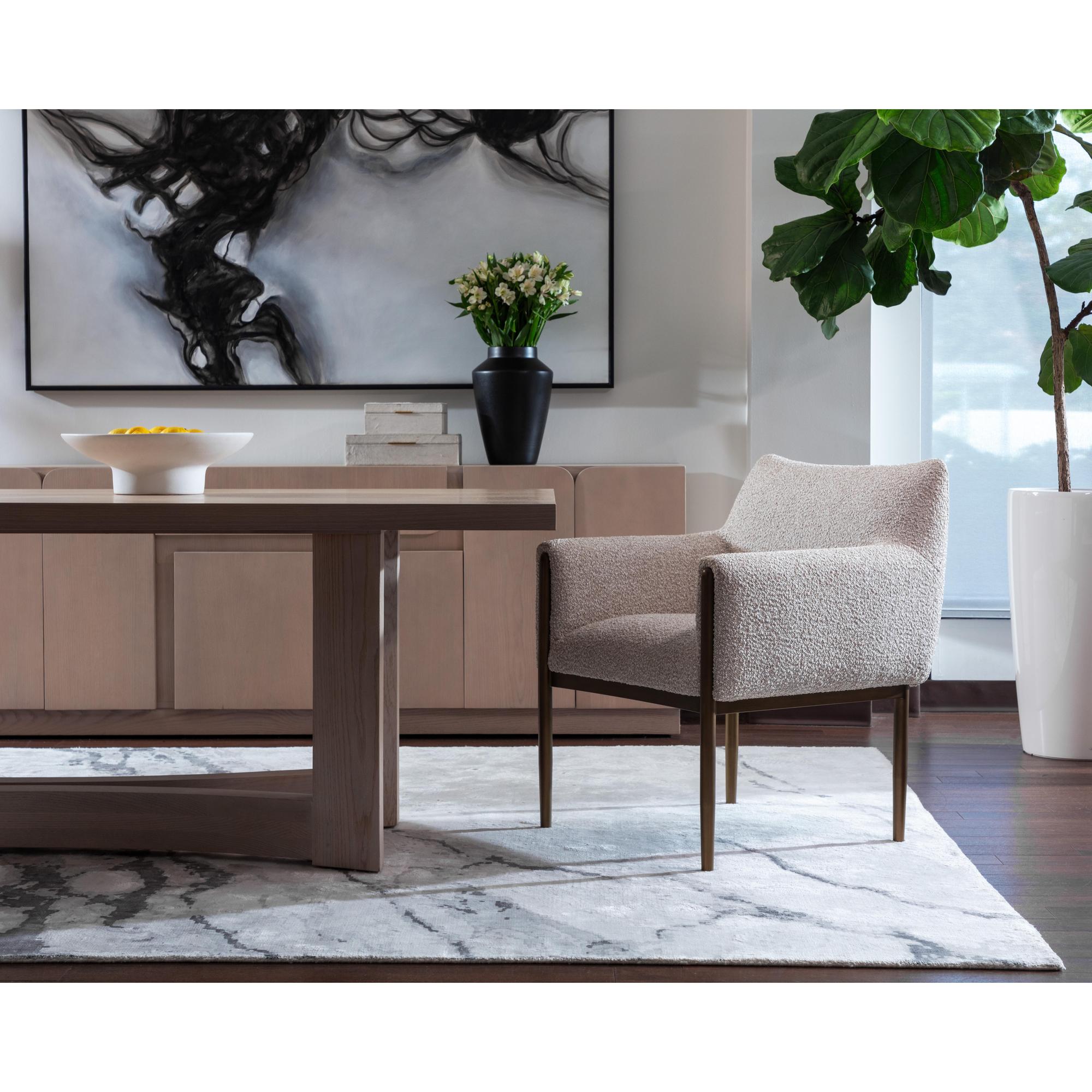 The Olea Lounge Chair is the masterful union of mid-century technique and contemporary ease. Versatile enough to accompany any space and boasting a charming silhouette with bronze powder-coated steel legs that emphasize the plush texture of santa cruz oatmeal fabric.