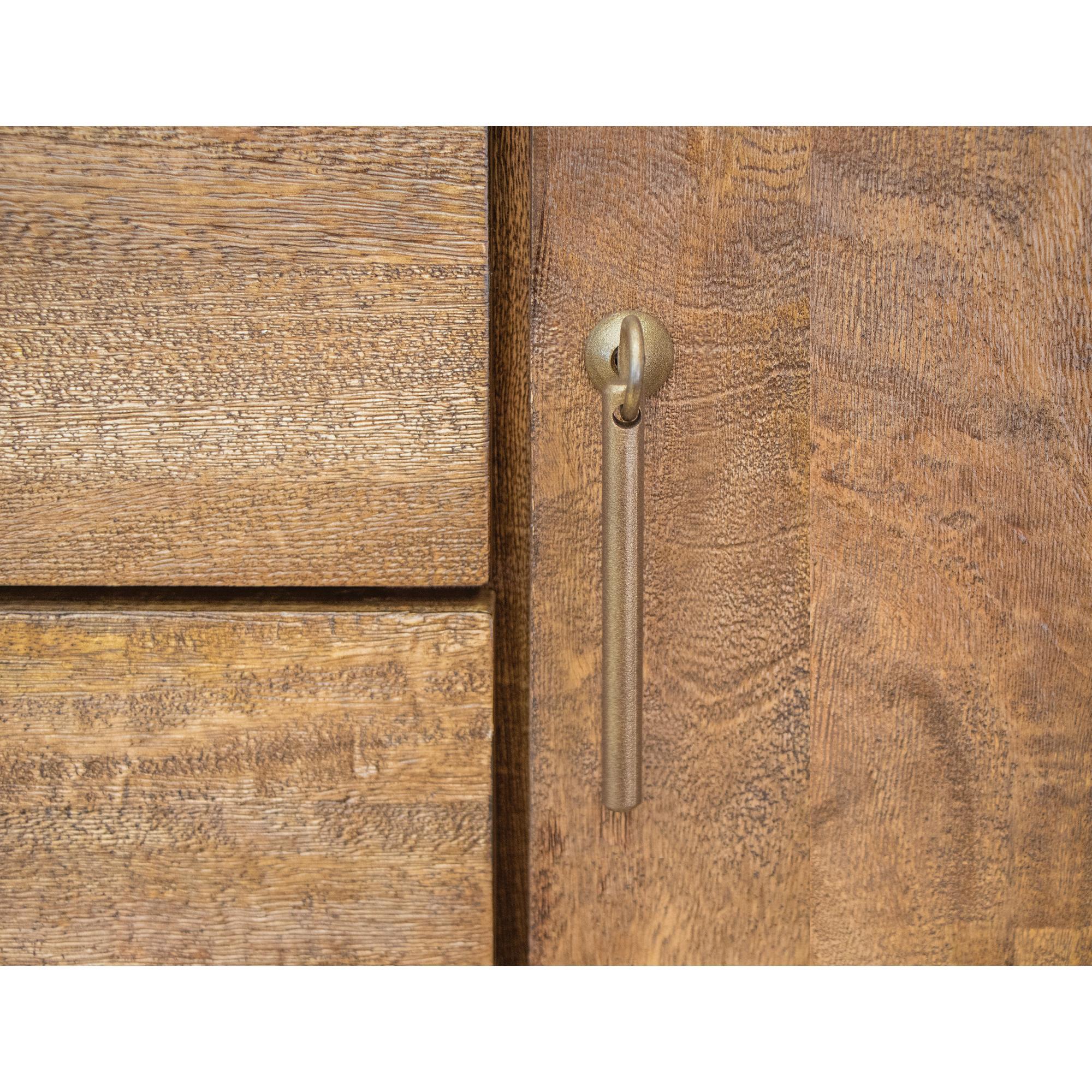 - Metal pulls coated with gold-aged electrostatic paint.