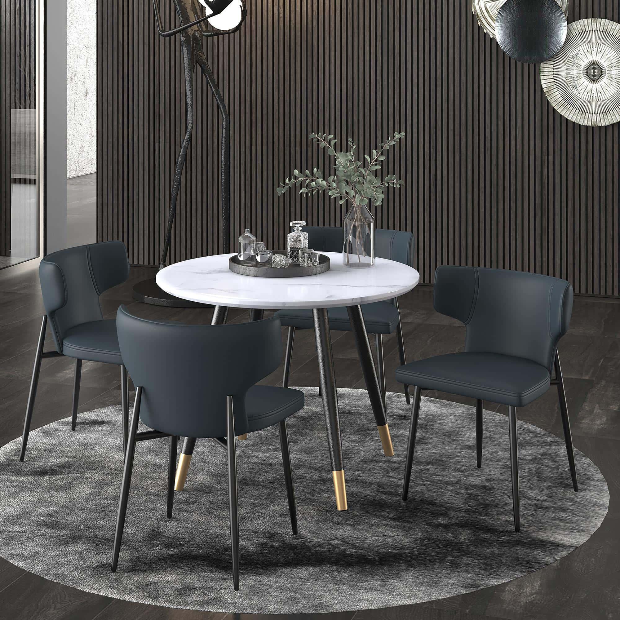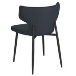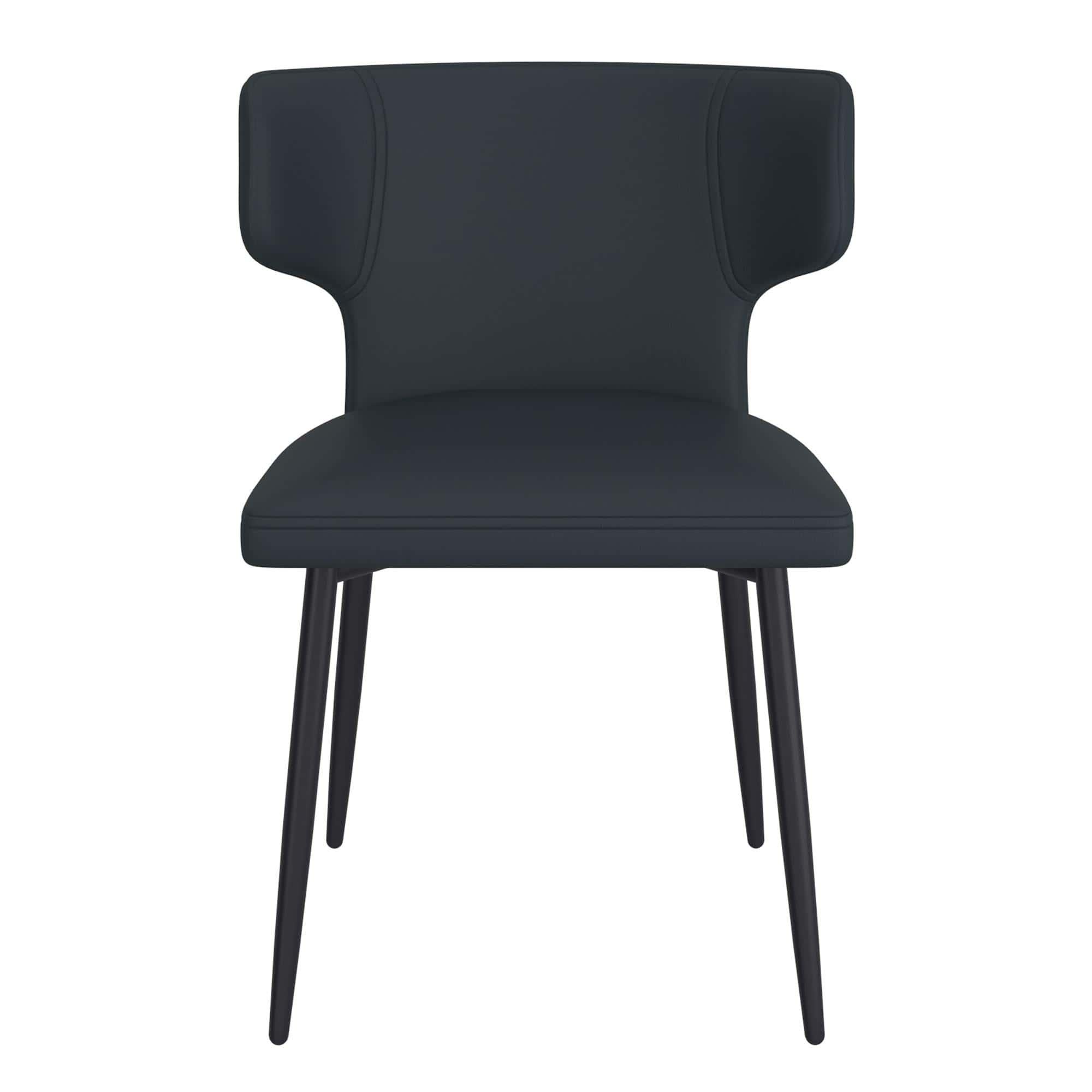 The casual elegance of this dining chair is surpassed only by its comfort. The curved back and cushioned seat will provide hours of comfort, while the modern wing back design will continue to please the eyes. Faux leather upholstery is easy to wipe clean and the black metal legs are a seamless fit to any decor. Use in a formal dining room for those epic holiday feasts, or as your casual kitchen seating for everyday memories.