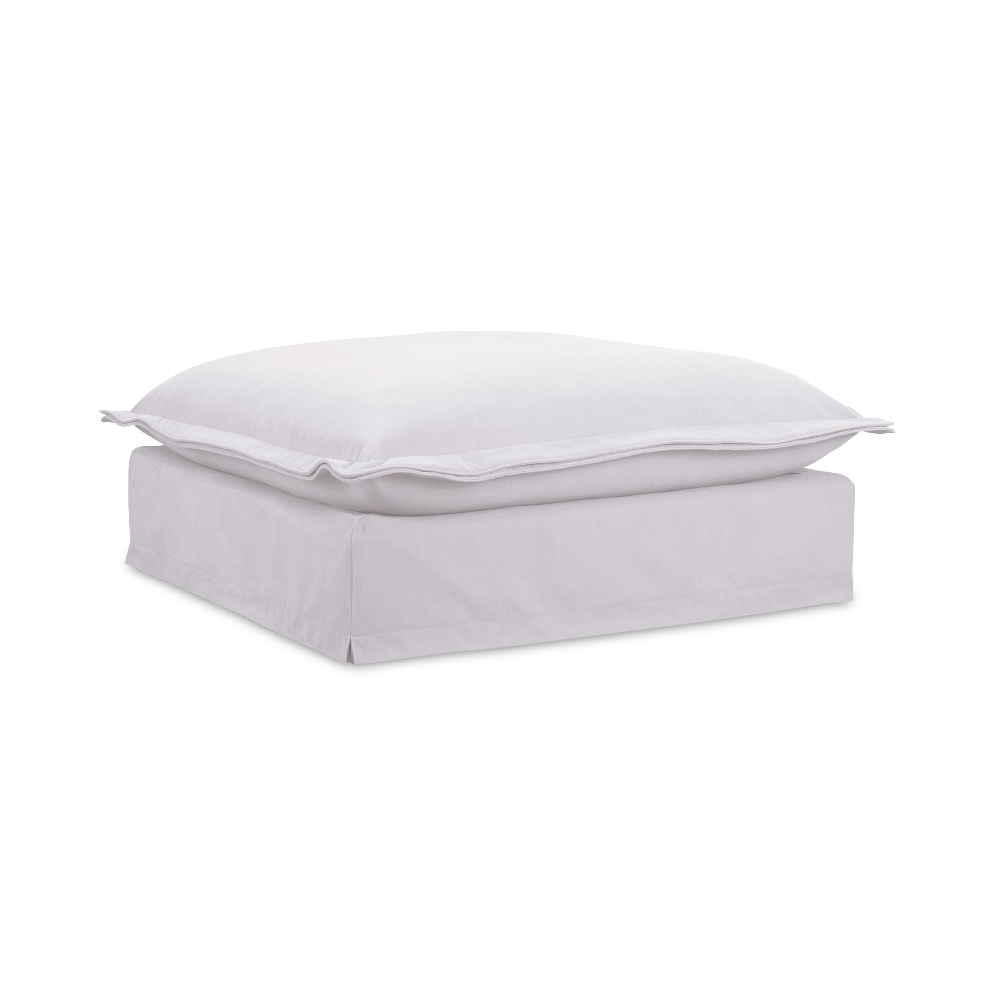 With its elegant slipcover easy-to-clean LiveSmart performance fabric upholstery, the Olivia ottoman nods to traditional design while embracing the demands of everyday living. Crafted for unrivaled comfort, it features plush seats made from a luxurious feather and fiber blend, complemented by flange edge seams for a soft, pillow-like feel.