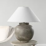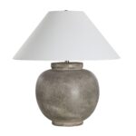 To say that the earthenware look is having a real moment in the decorating world is a bit of an understatement. The Olivia table lamp is a prime example of our love for this timeless material. Crafted from hand thrown ceramic with plenty of texture and a stunning olive wash finish, it brings an organic look and feel to any interior. In contrast to this earthy vibe is a large off-white linen tapered shade that sits atop a champagne plated fitting and included bulb that work together to fill the room with a dimmable filtered ambient glow. Whether you place a pair on a sideboard in a dining room or use one as a bedroom table lamp, the end result will be stunningly stylish.