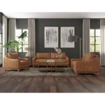 The Olivo collection seamlessly blends clean lines with a harmonious fusion of both organic and geometric shapes, offering unparalleled comfort for your space with its mid-century modern style, marked by subtle curves on padded armrests.