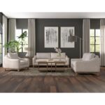 The Olivo collection seamlessly blends clean lines with a harmonious fusion of both organic and geometric shapes, offering unparalleled comfort for your space with its mid-century modern style, marked by subtle curves on padded armrests.