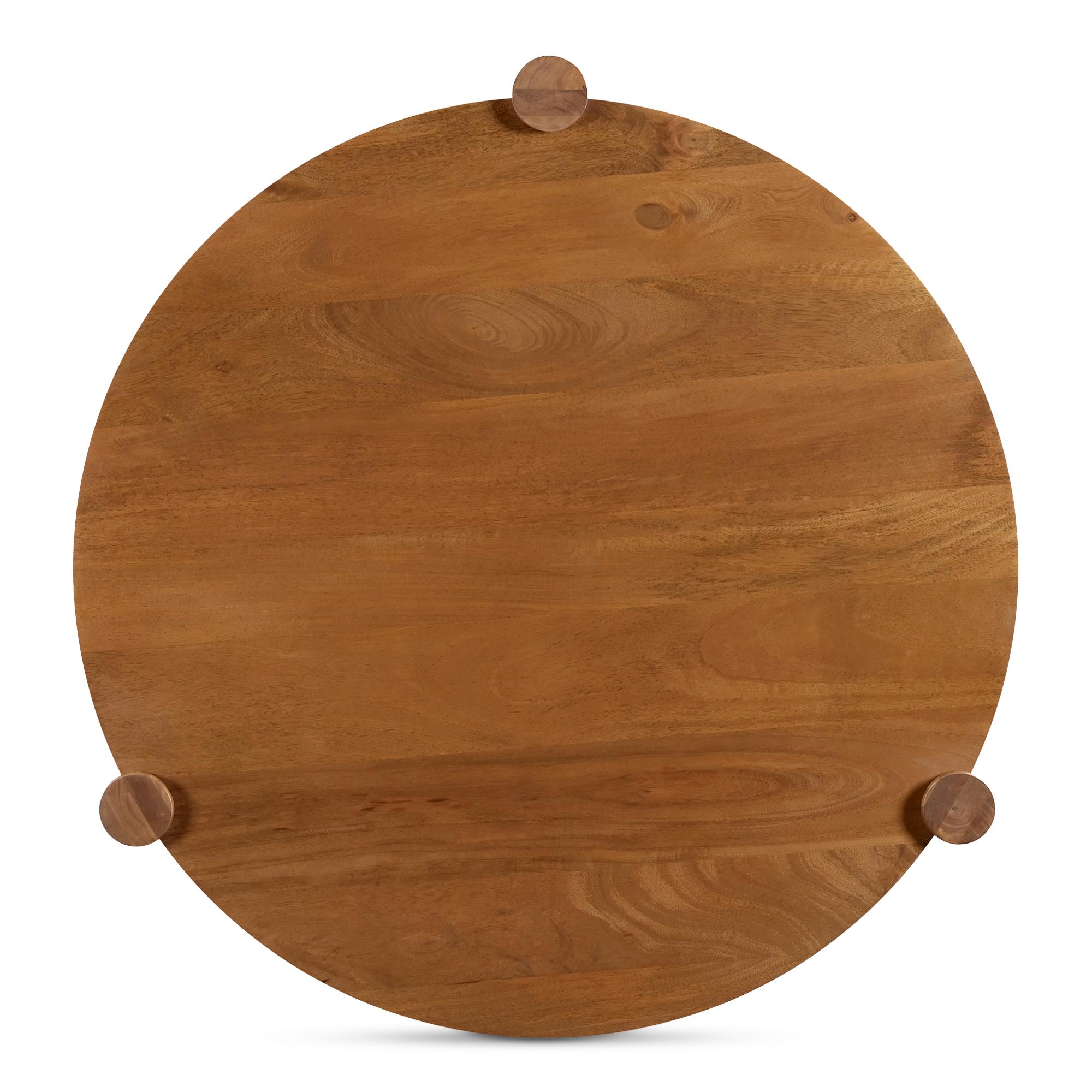 The Olsen coffee table brings a vintage appeal and timeless charm, as its solid mango wood construction and warm brown finish add a rustic elegance. The cylindrical legs and meticulous joinery details are artfully incorporated alongside open storage. This piece effortlessly brings a sense of airiness and refreshing lightness to any space.