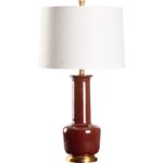 Refresh your home with the Olsen Lamp. This transitional design features an aubergine glazed ceramic vase with a classic silhouette. An antique brass mounting and ivory linen drum shade bring elegance to this timeless look. Display on tabletops throughout your home for a light source that blends effortlessly with any style.